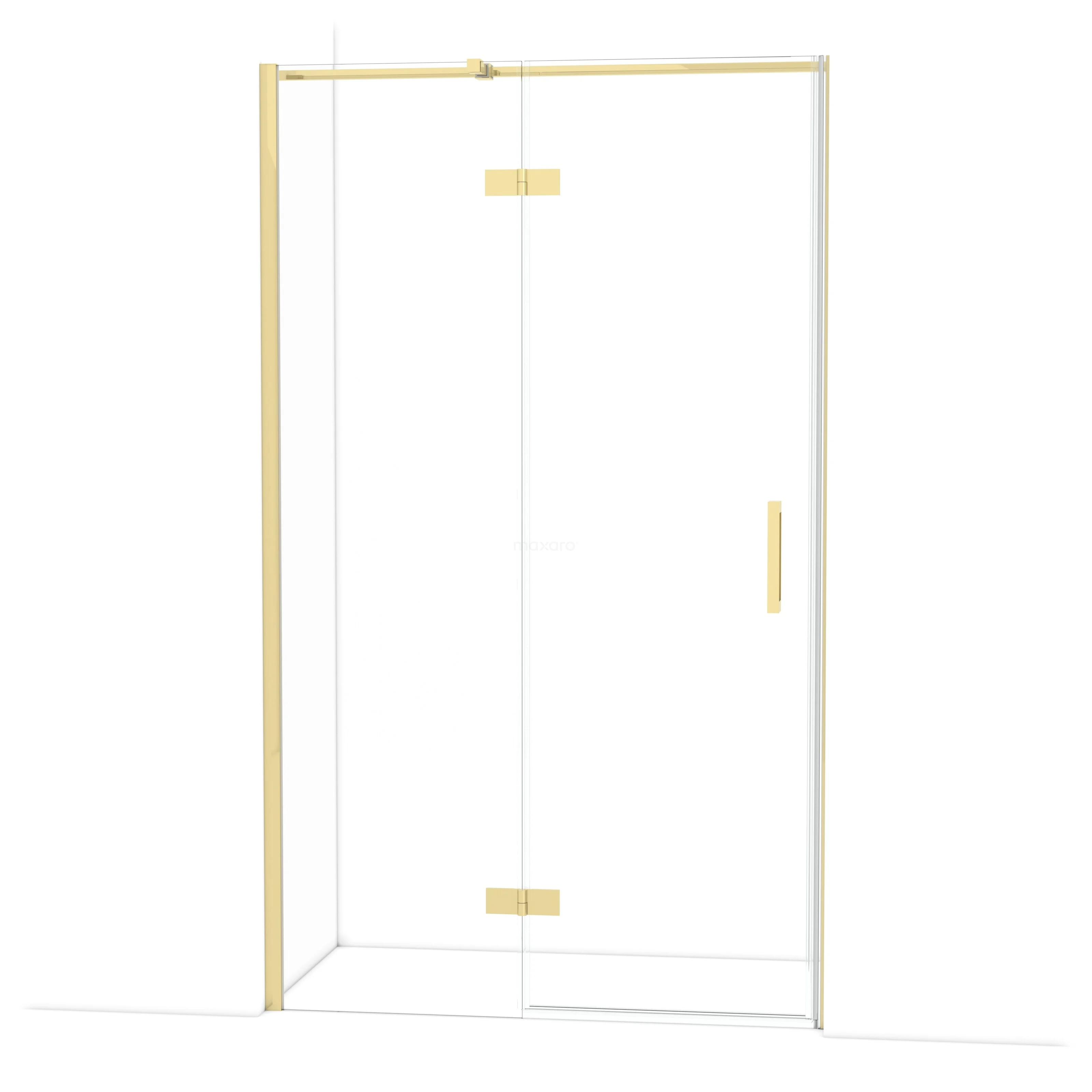 The 120 cm Diamond hinged door is ideal for closing off your shower area. This model features a refined and luxurious design in shiny light gold and is equipped with high-quality hinges, wall profile, and a vertical handle. The clear glass provides a sense of spaciousness. Thanks to its adjustability, you can easily make the shower door fit. The total width is adjustable from 119.8 to 121.3 cm.