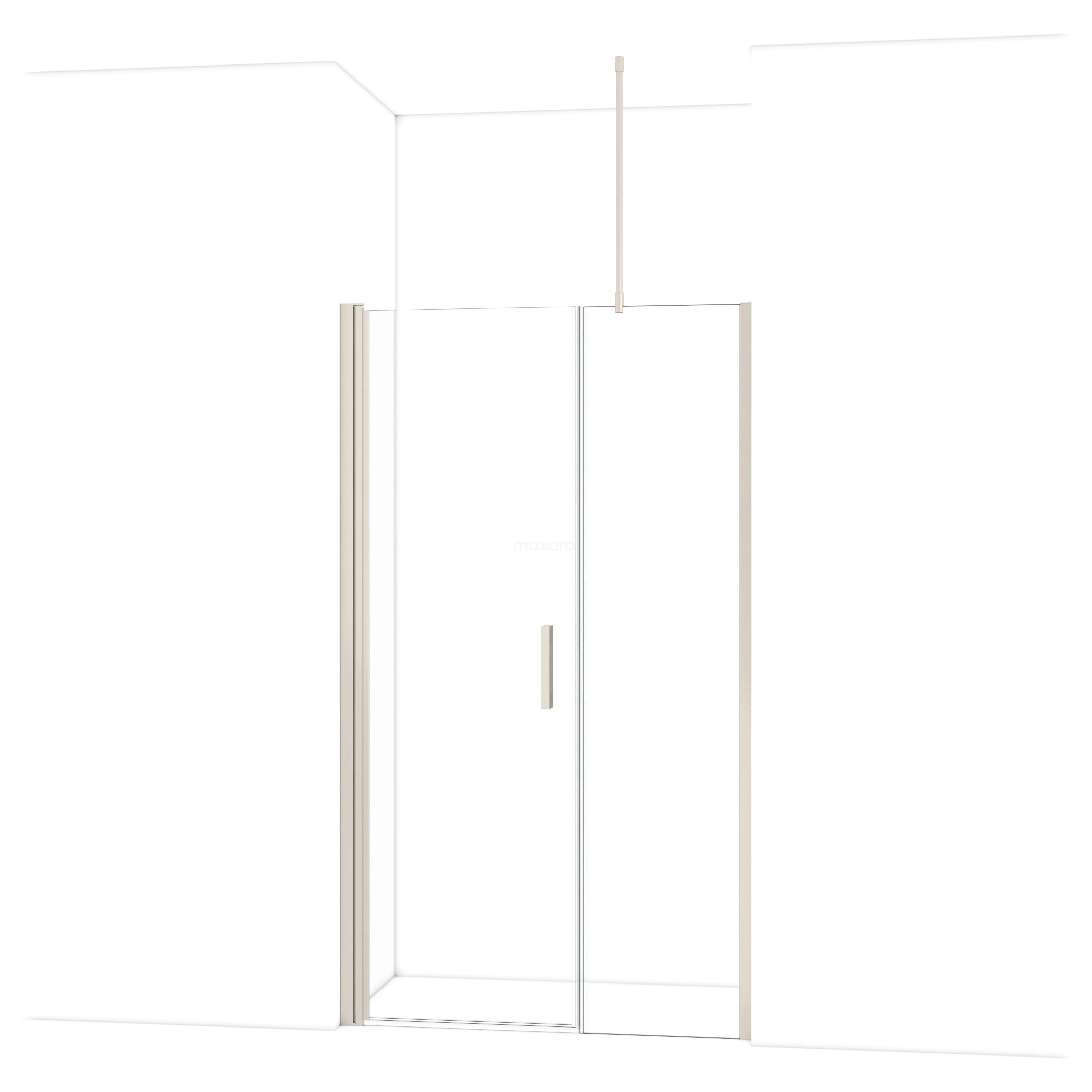 De douchedeur beschikt over een verstelbaarheid, waardoor deze een minimale en maximale afmeting heeft. De minimale en maximale afmeting van een douche met muurprofiel wordt gemeten inclusief het muurprofiel. De minimale en maximale afmeting van een douche met tweepuntsbevestiging wordt gemeten inclusief het glas.