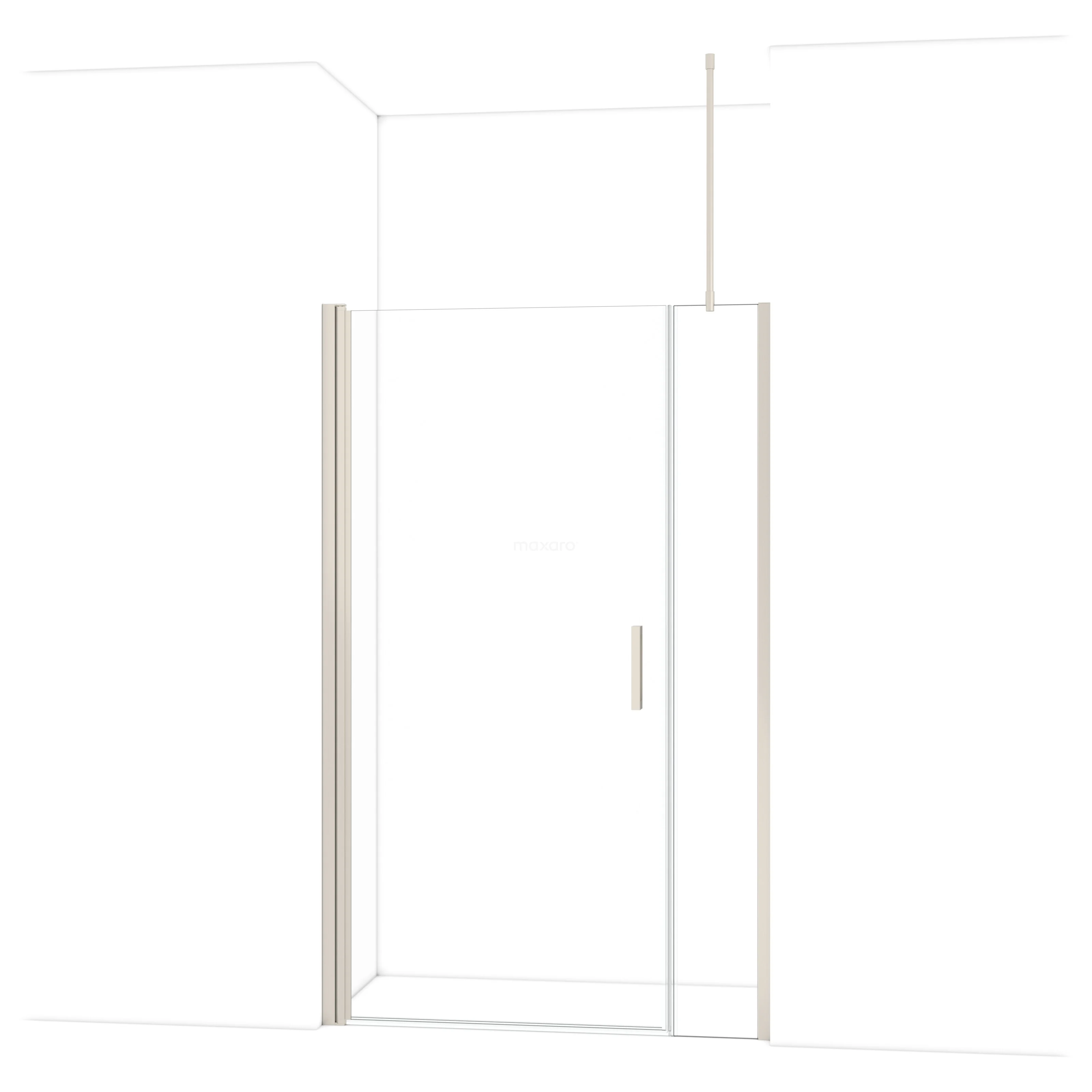 De douchedeur beschikt over een verstelbaarheid, waardoor deze een minimale en maximale afmeting heeft. De minimale en maximale afmeting van een douche met muurprofiel wordt gemeten inclusief het muurprofiel. De minimale en maximale afmeting van een douche met tweepuntsbevestiging wordt gemeten inclusief het glas.