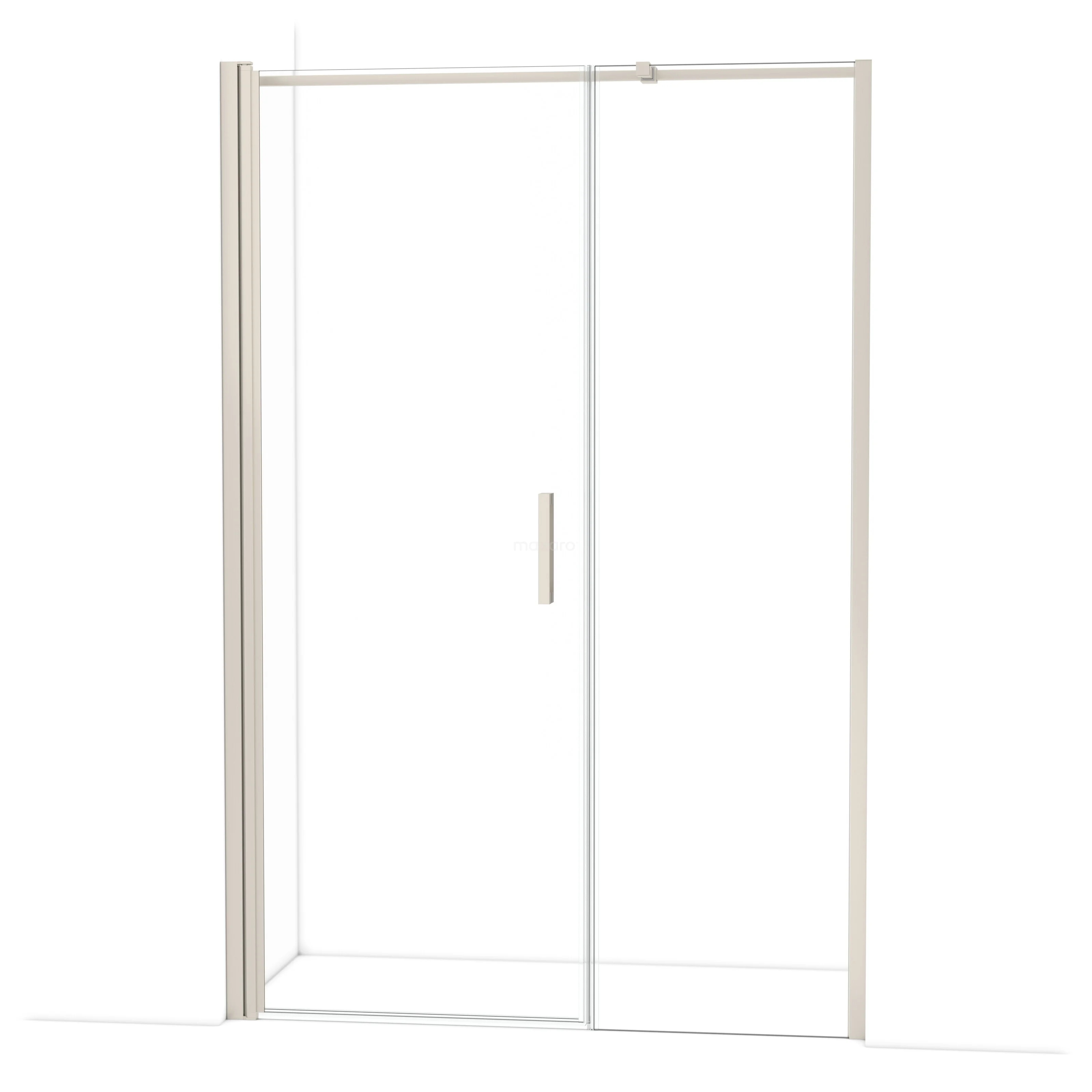 De douchedeur beschikt over een verstelbaarheid, waardoor deze een minimale en maximale afmeting heeft. De minimale en maximale afmeting van een douche met muurprofiel wordt gemeten inclusief het muurprofiel. De minimale en maximale afmeting van een douche met tweepuntsbevestiging wordt gemeten inclusief het glas.