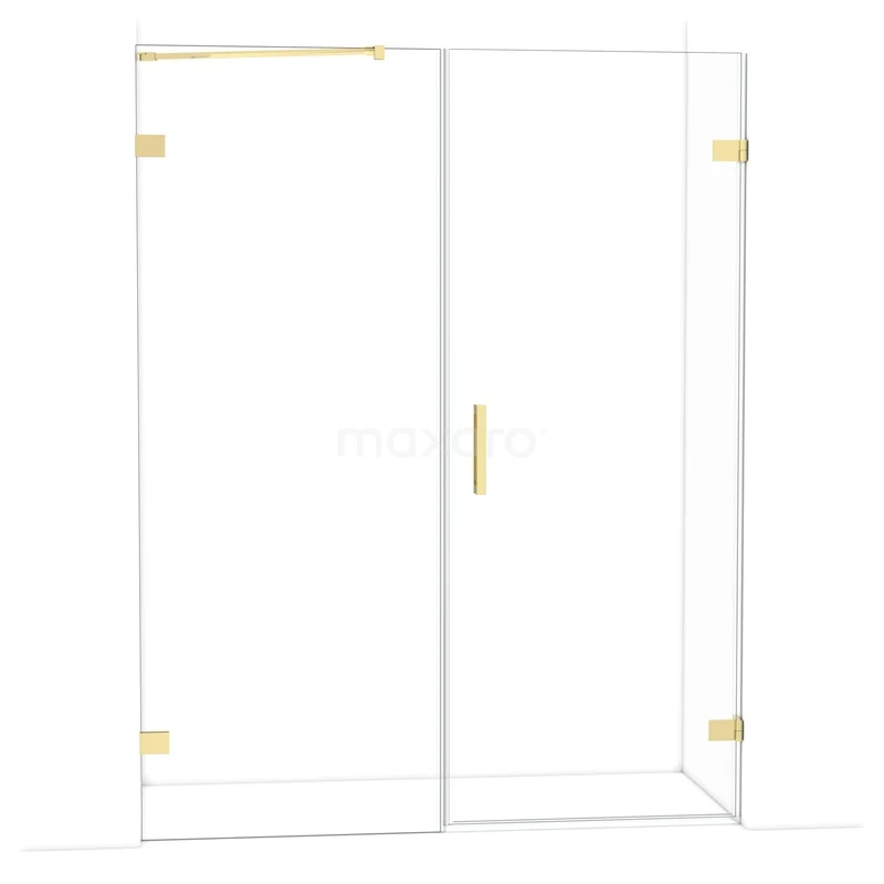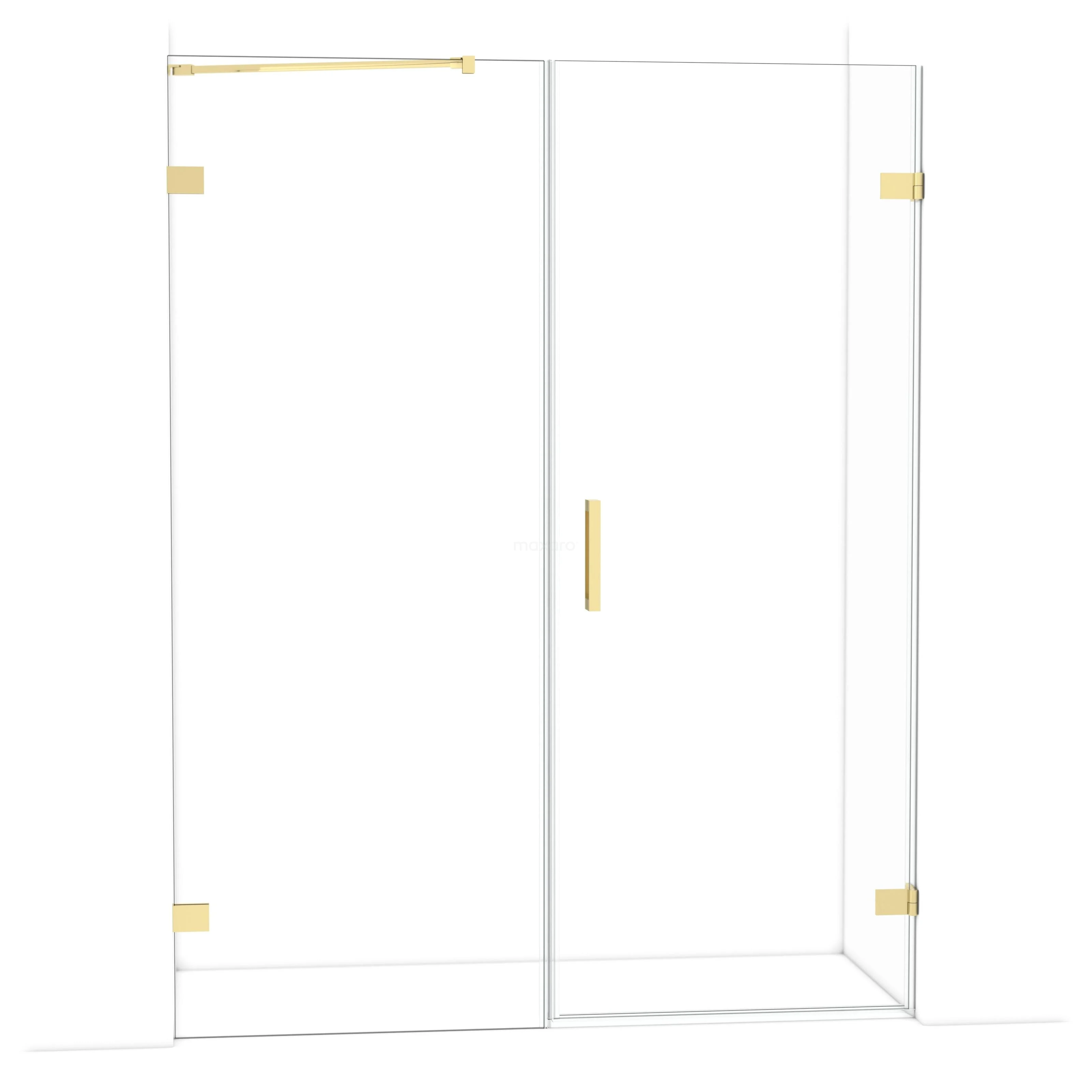 The Diamond hinged door of 155 cm is ideal for closing off your shower area. This model features a refined and luxurious design in glossy light gold and is equipped with high-quality wall hinges and a vertical handle. The clear glass provides a sense of space. Thanks to its adjustability, you can easily make the shower door fit. The total width is adjustable from 155.6 to 155.9 cm.