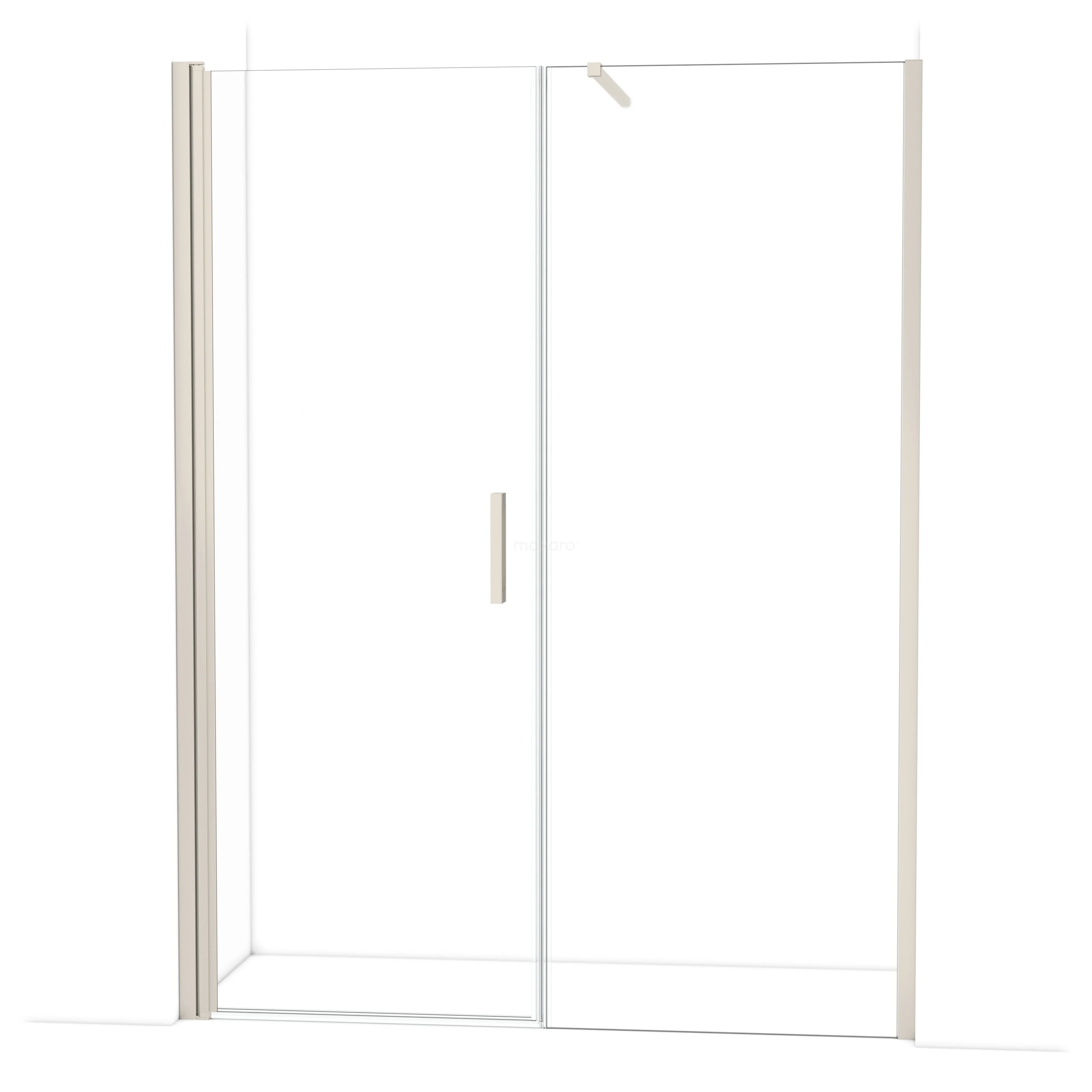 De douchedeur beschikt over een verstelbaarheid, waardoor deze een minimale en maximale afmeting heeft. De minimale en maximale afmeting van een douche met muurprofiel wordt gemeten inclusief het muurprofiel. De minimale en maximale afmeting van een douche met tweepuntsbevestiging wordt gemeten inclusief het glas.