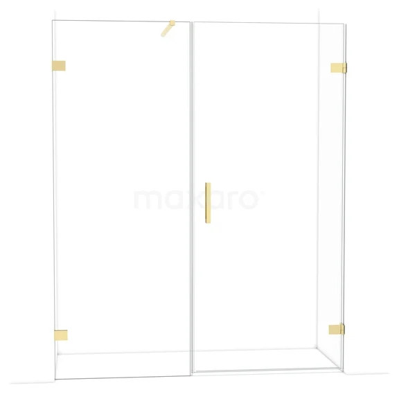 The Diamond hinged door of 165 cm is ideal for closing off your shower area. This model features a refined and luxurious design in glossy light gold and is equipped with high-quality wall hinges and a vertical handle. The clear glass provides a sense of spaciousness. Thanks to its adjustability, you can easily make the shower door fit. The total width is adjustable from 165.6 to 165.9 cm.