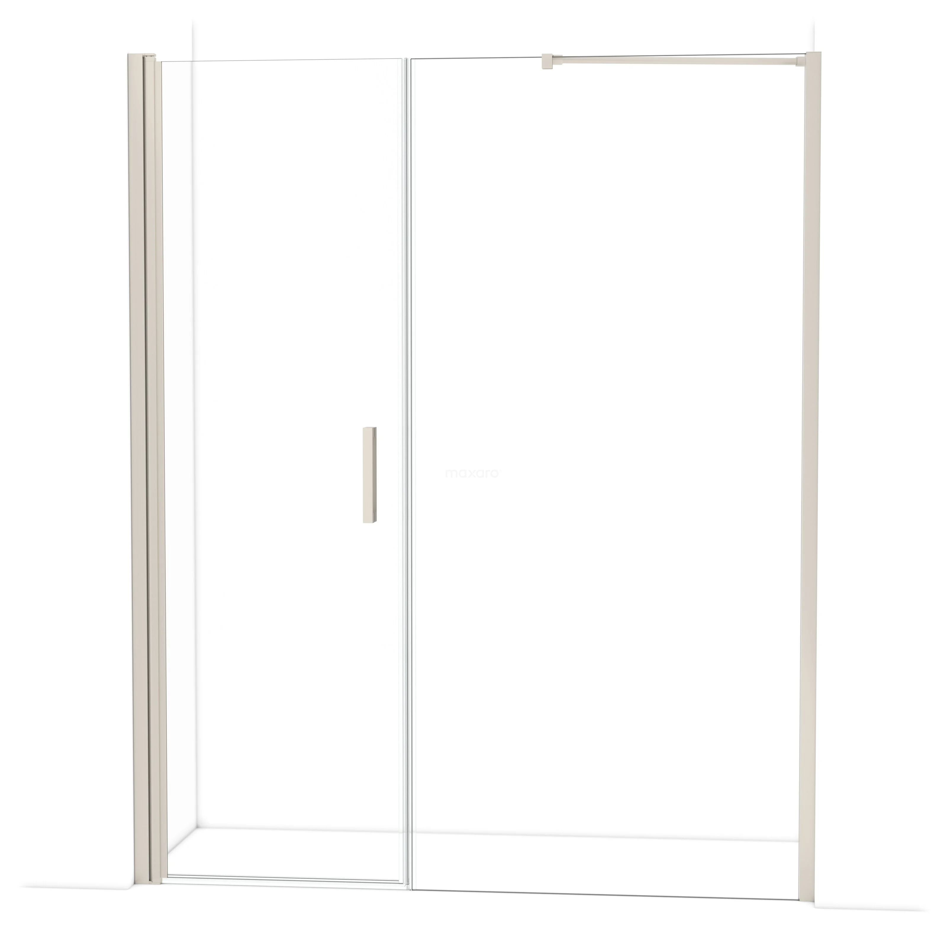 De douchedeur beschikt over een verstelbaarheid, waardoor deze een minimale en maximale afmeting heeft. De minimale en maximale afmeting van een douche met muurprofiel wordt gemeten inclusief het muurprofiel. De minimale en maximale afmeting van een douche met tweepuntsbevestiging wordt gemeten inclusief het glas.