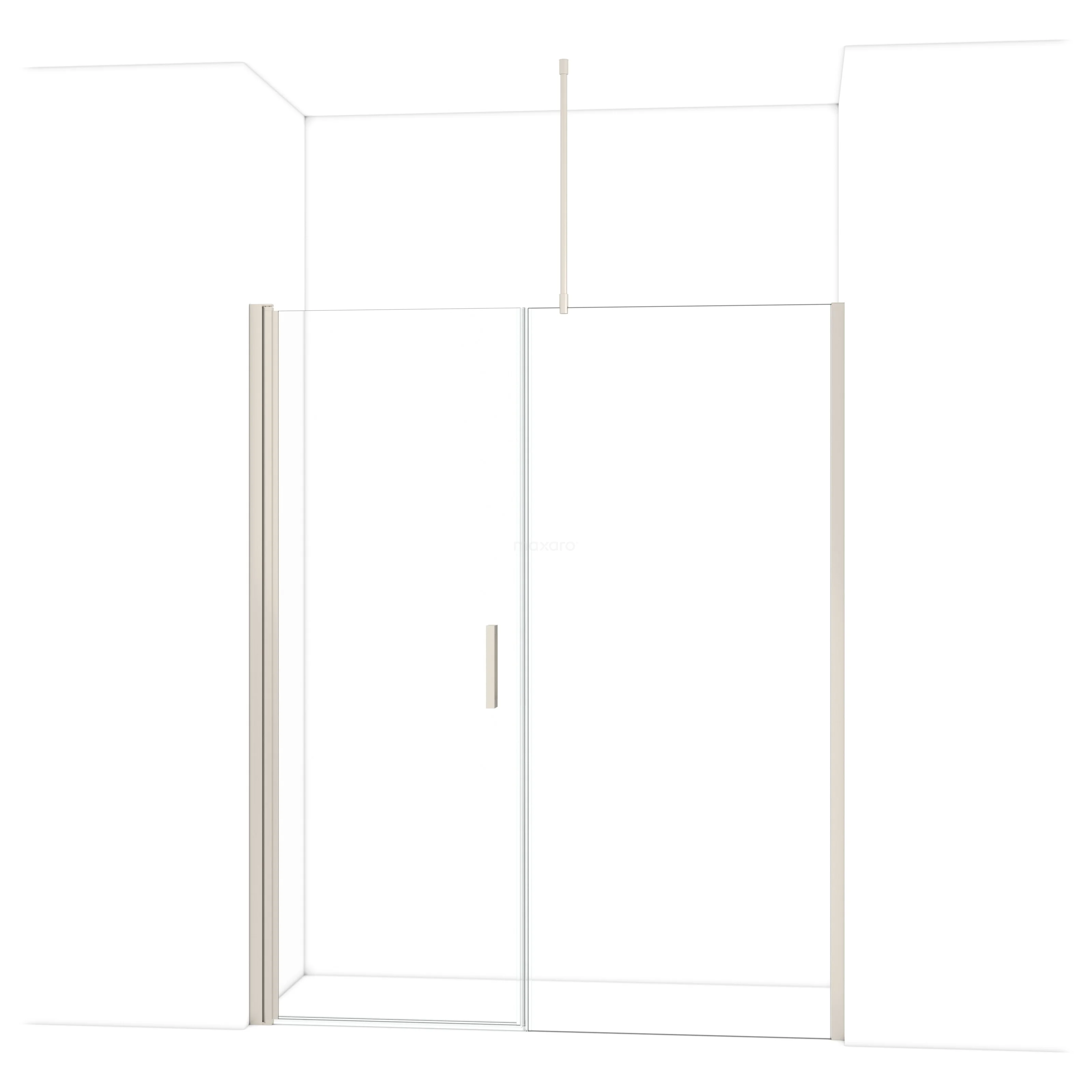 De douchedeur beschikt over een verstelbaarheid, waardoor deze een minimale en maximale afmeting heeft. De minimale en maximale afmeting van een douche met muurprofiel wordt gemeten inclusief het muurprofiel. De minimale en maximale afmeting van een douche met tweepuntsbevestiging wordt gemeten inclusief het glas.