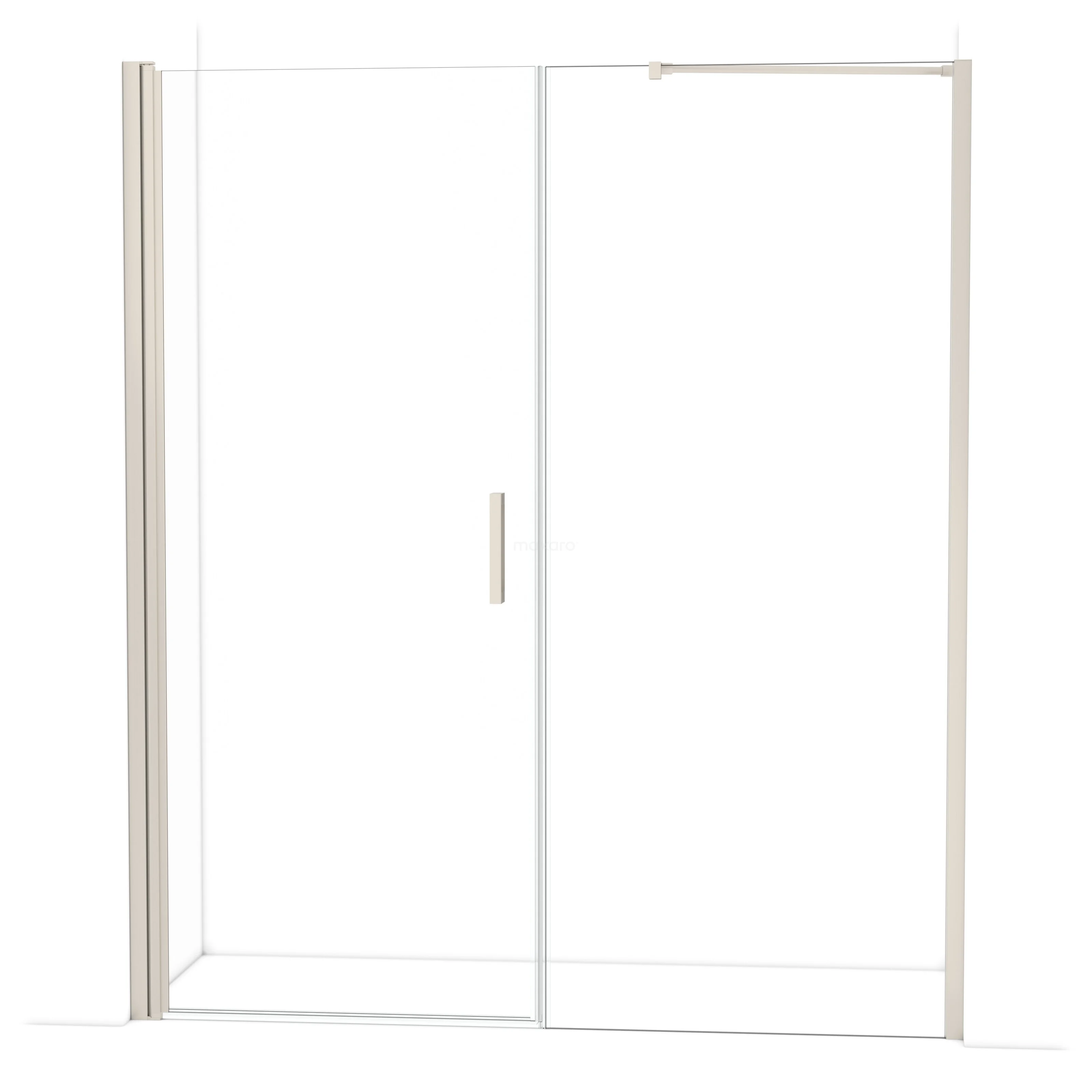 De douchedeur beschikt over een verstelbaarheid, waardoor deze een minimale en maximale afmeting heeft. De minimale en maximale afmeting van een douche met muurprofiel wordt gemeten inclusief het muurprofiel. De minimale en maximale afmeting van een douche met tweepuntsbevestiging wordt gemeten inclusief het glas.