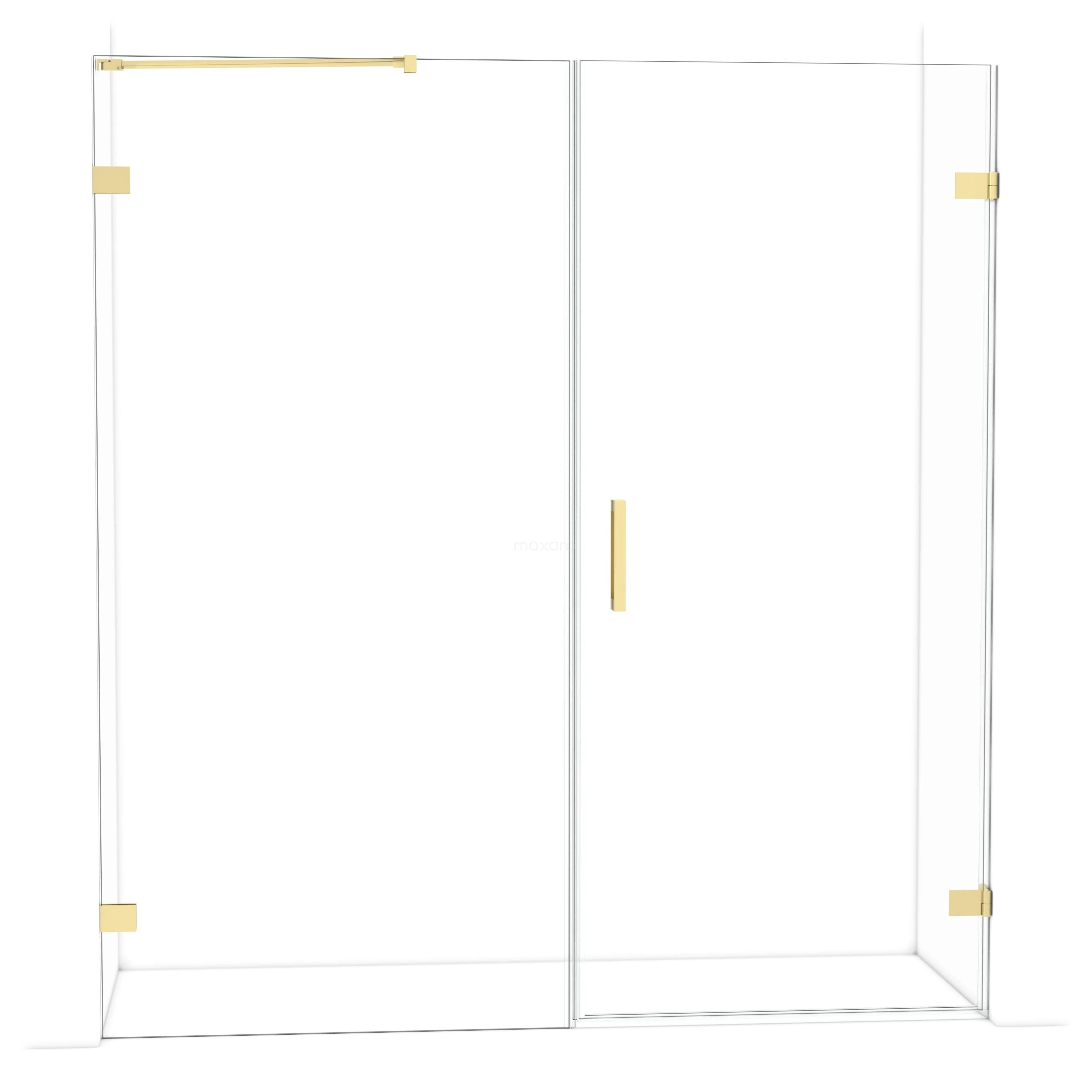 The Diamond hinged door of 185 cm is ideal for closing off your shower space. This model features a refined and luxurious design in glossy light gold and is equipped with high-quality wall hinges and a vertical handle. The clear glass provides a sense of spaciousness. Thanks to its adjustability, you can easily make the shower door fit. The total width is adjustable from 185.6 to 185.9 cm.
