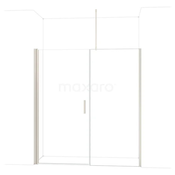 De douchedeur beschikt over een verstelbaarheid, waardoor deze een minimale en maximale afmeting heeft. De minimale en maximale afmeting van een douche met muurprofiel wordt gemeten inclusief het muurprofiel. De minimale en maximale afmeting van een douche met tweepuntsbevestiging wordt gemeten inclusief het glas.