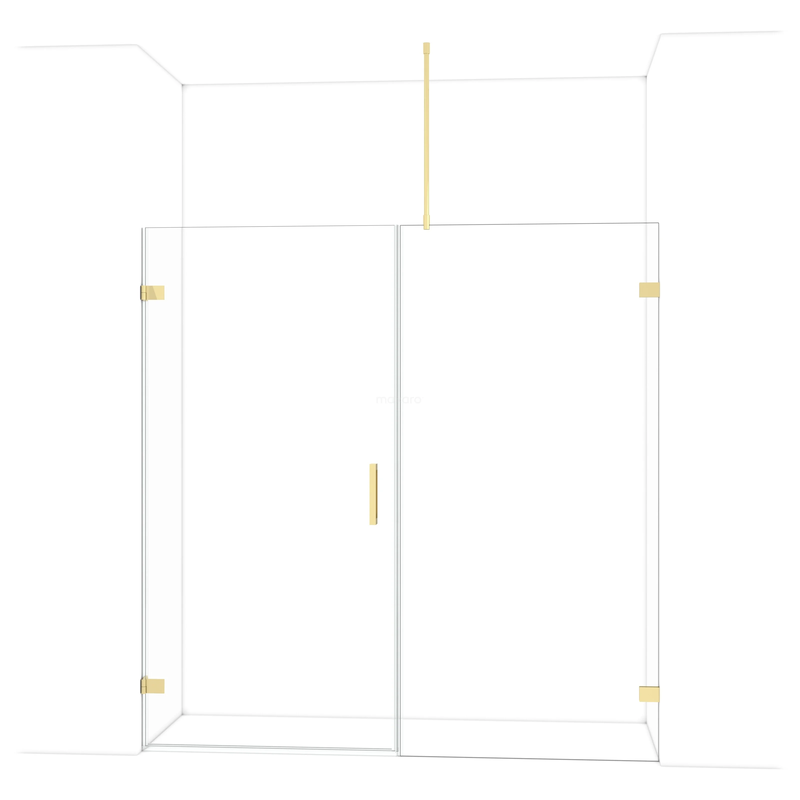The Diamond hinged door of 195 cm is ideal for closing off your shower space. This model features a refined and luxurious design in glossy light gold and is equipped with high-quality wall hinges and a vertical handle. The clear glass provides a sense of spaciousness. Thanks to its adjustability, you can easily make the shower door fit. The total width is adjustable from 195.6 to 195.9 cm.