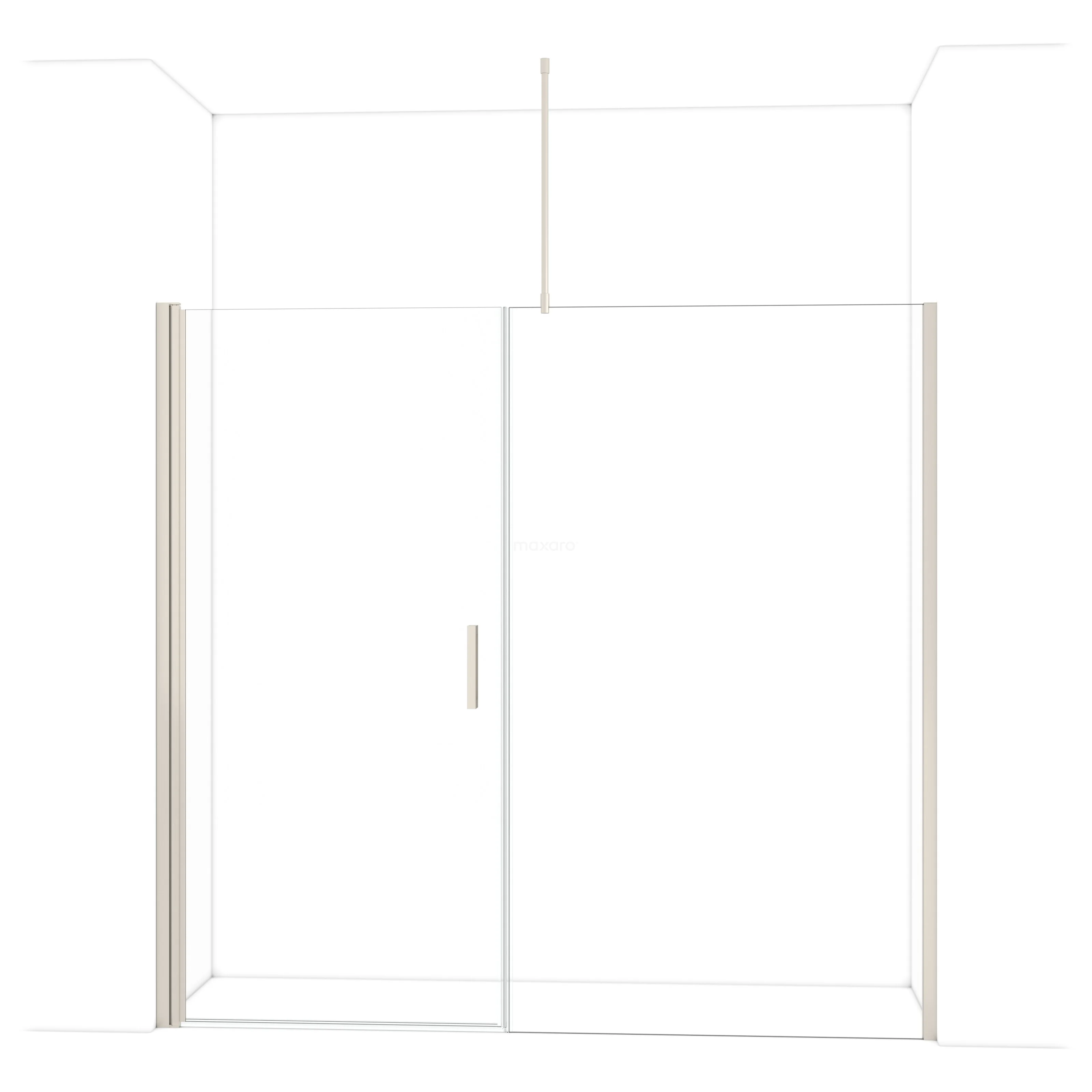 De douchedeur beschikt over een verstelbaarheid, waardoor deze een minimale en maximale afmeting heeft. De minimale en maximale afmeting van een douche met muurprofiel wordt gemeten inclusief het muurprofiel. De minimale en maximale afmeting van een douche met tweepuntsbevestiging wordt gemeten inclusief het glas.