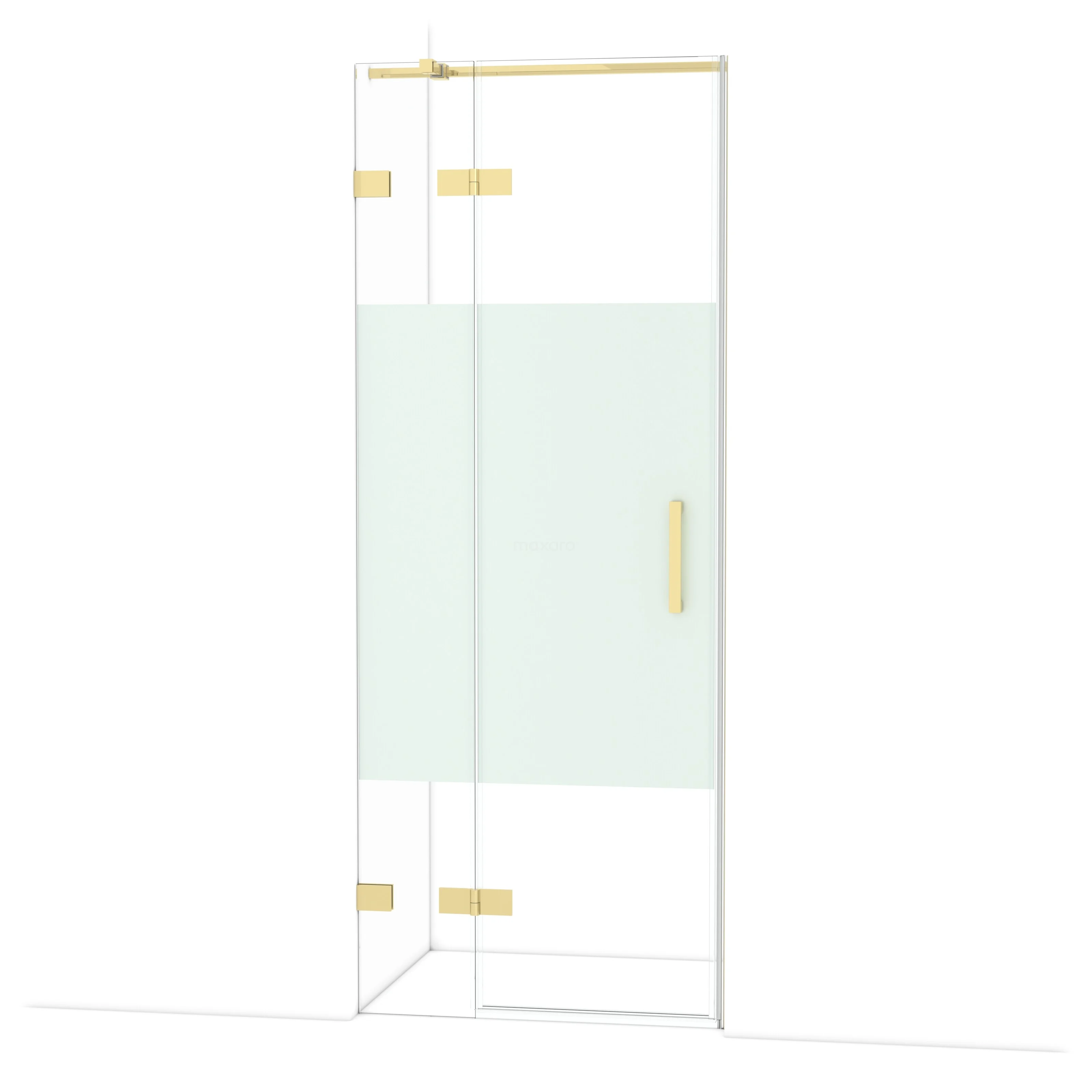 De Diamond-draaideur van 80 cm is ideaal om jouw douchenis af te sluiten. Dit exemplaar heeft een verfijnd en luxe design van glanzend lichtgoud en is voorzien van hoogwaardige scharnieren, tweepuntsbevestiging en een verticaal handvat. Het helder glas met matte strook zorgt voor meer privacy. Door de verstelbaarheid maak je de douchedeur gemakkelijk passend. De totale breedte is verstelbaar van 79,7 tot en met 80 cm.
