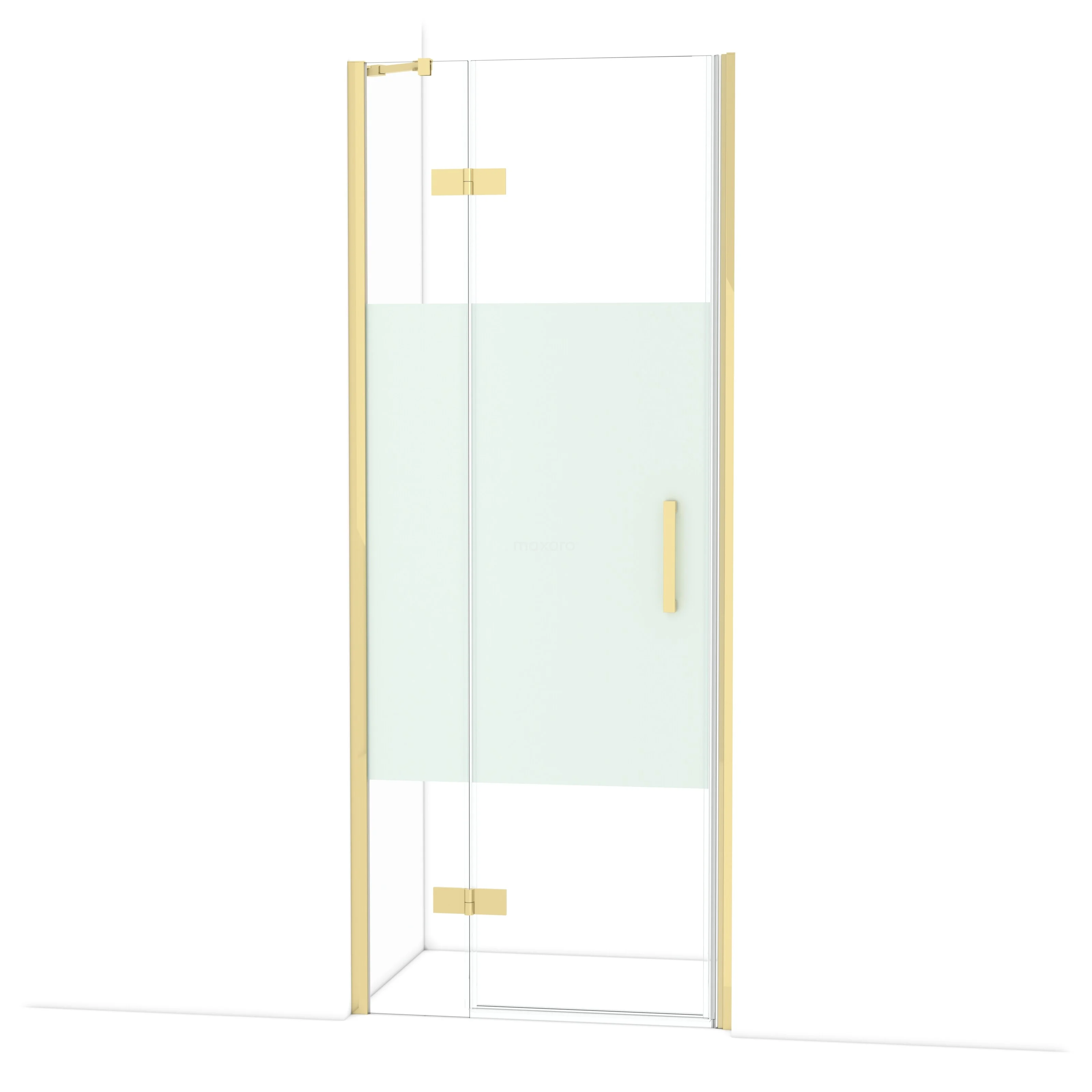 De Diamond-draaideur van 80 cm is ideaal om jouw douchenis af te sluiten. Dit exemplaar heeft een verfijnd en luxe design van glanzend lichtgoud en is voorzien van hoogwaardige scharnieren, muurprofiel en een verticaal handvat. Het helder glas met matte strook zorgt voor meer privacy. Door de verstelbaarheid maak je de douchedeur gemakkelijk passend. De totale breedte is verstelbaar van 81,8 tot en met 84 cm.