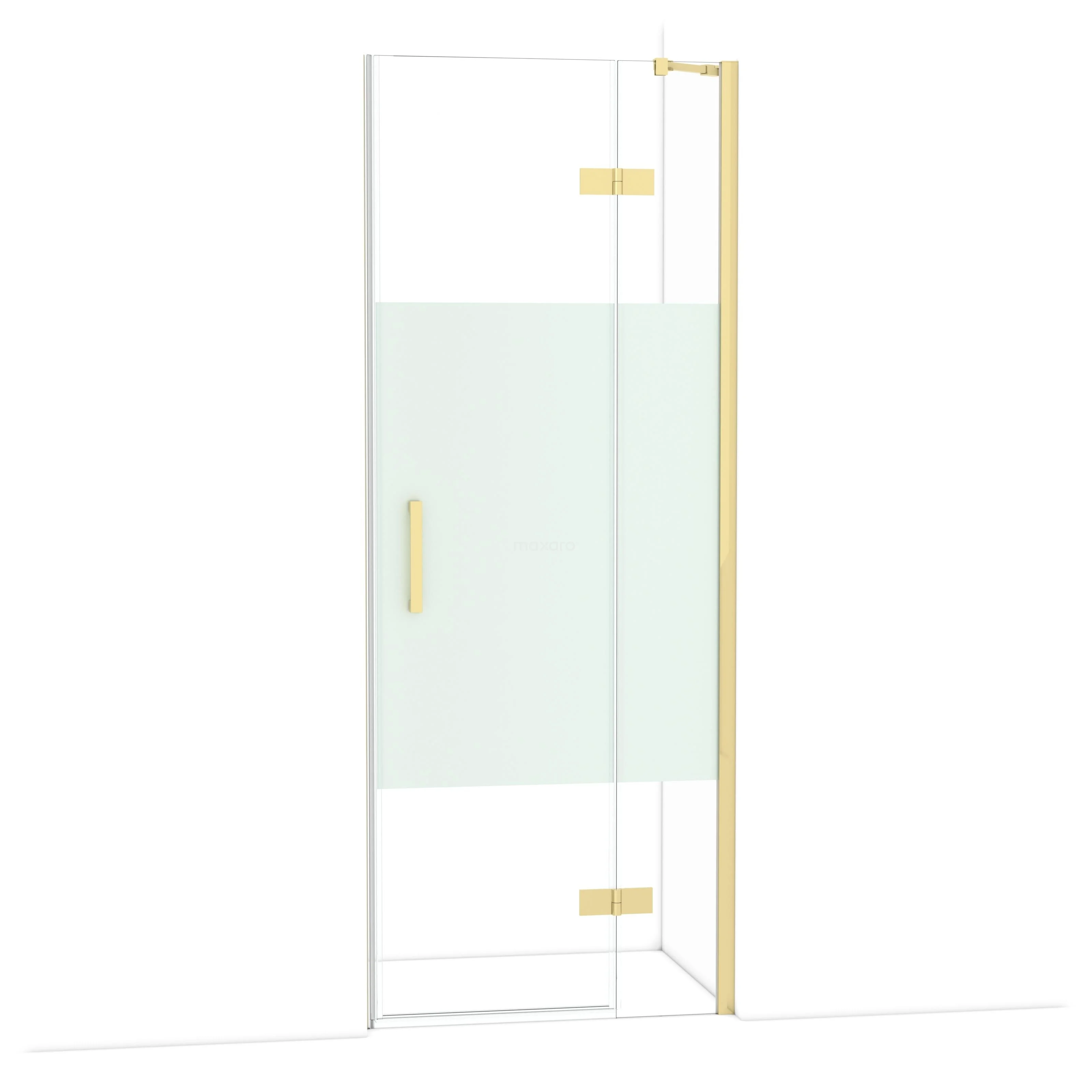 De Diamond-draaideur van 80 cm is ideaal om jouw douchenis af te sluiten. Dit exemplaar heeft een verfijnd en luxe design van glanzend lichtgoud en is voorzien van hoogwaardige scharnieren, muurprofiel en een verticaal handvat. Het helder glas met matte strook zorgt voor meer privacy. Door de verstelbaarheid maak je de douchedeur gemakkelijk passend. De totale breedte is verstelbaar van 79,8 tot en met 81,3 cm.