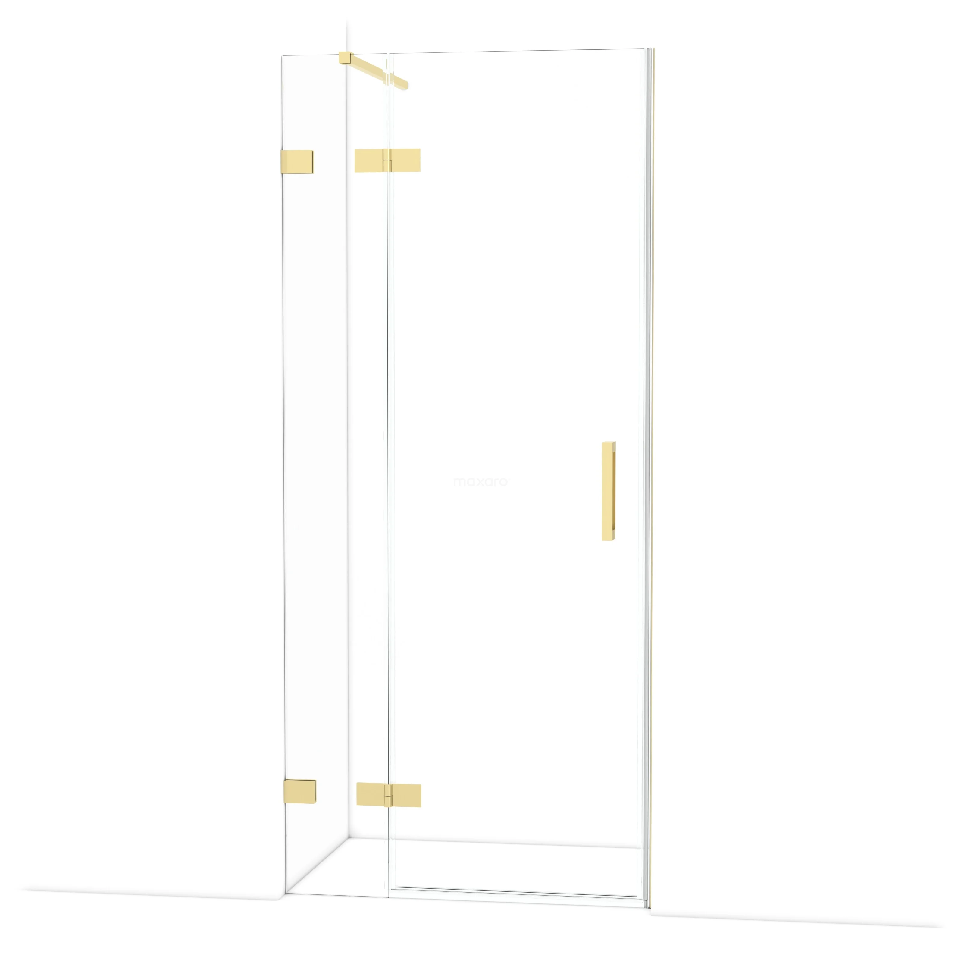 De Diamond-draaideur van 90 cm is ideaal om jouw douchenis af te sluiten. Dit exemplaar heeft een verfijnd en luxe design van glanzend lichtgoud en is voorzien van hoogwaardige scharnieren, tweepuntsbevestiging en een verticaal handvat. Het helder glas zorgt voor een ruimtelijk gevoel. Door de verstelbaarheid maak je de douchedeur gemakkelijk passend. De totale breedte is verstelbaar van 89,7 tot en met 90 cm.