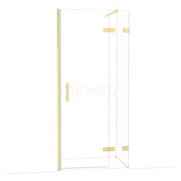 The Diamond hinged door of 90 cm is ideal for closing off your shower space. This model features a refined and luxurious design in glossy light gold and is equipped with high-quality hinges, two-point fixation, and a vertical handle. The clear glass provides a sense of spaciousness. Thanks to its adjustability, you can easily make the shower door fit. The total width is adjustable from 91.7 to 92.7 cm.