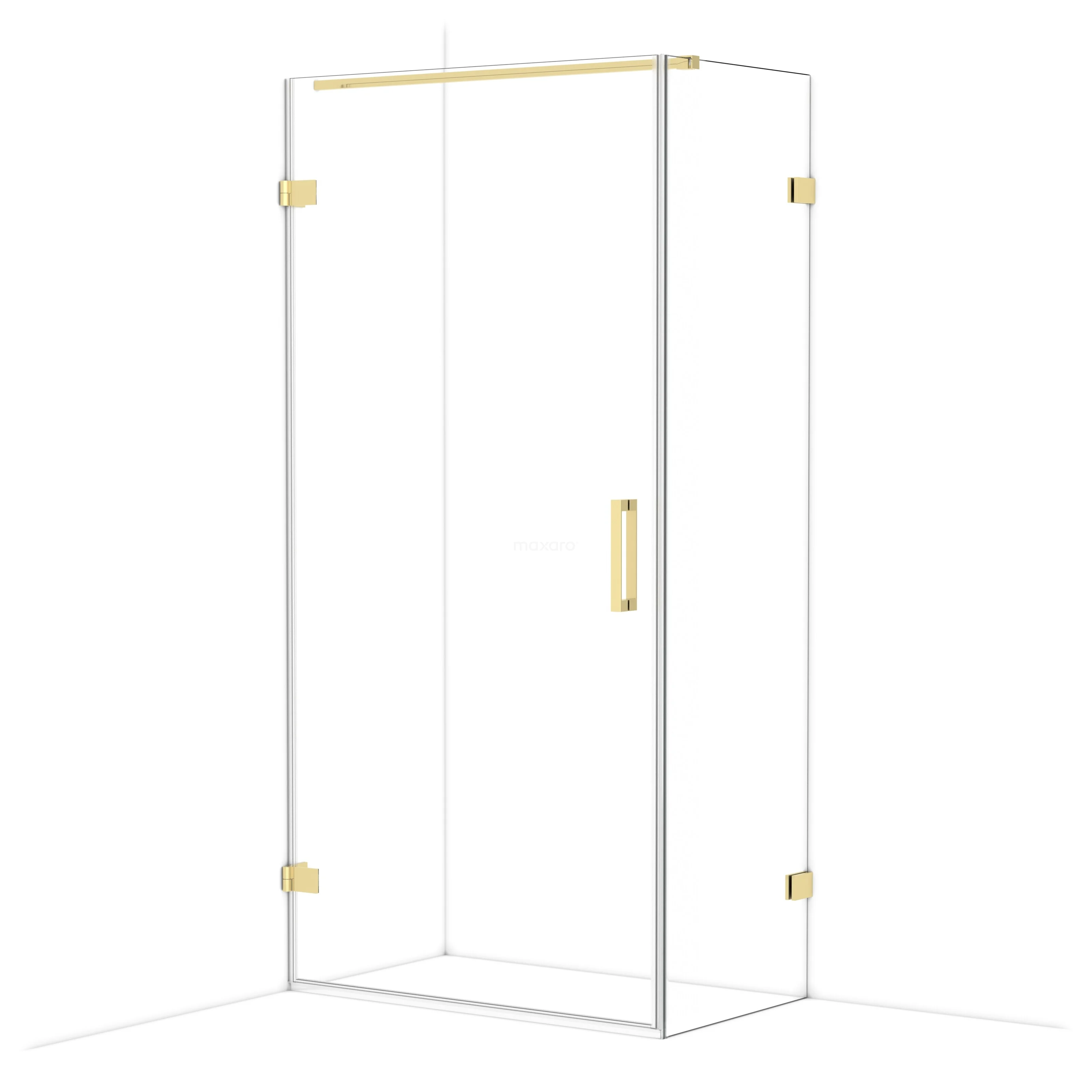 In the stylish Diamond shower cabin measuring 100x60 cm, you can enjoy delightful shower sessions every day. This rectangular cabin is characterised by a two-point attachment and the vertical handle. This model features a refined and luxurious design in glossy light gold and is equipped with clear glass for a spacious feel. The door side has an absolute measurement of 98.1 cm. The fixed wall is adjustable, making it easy to fit.