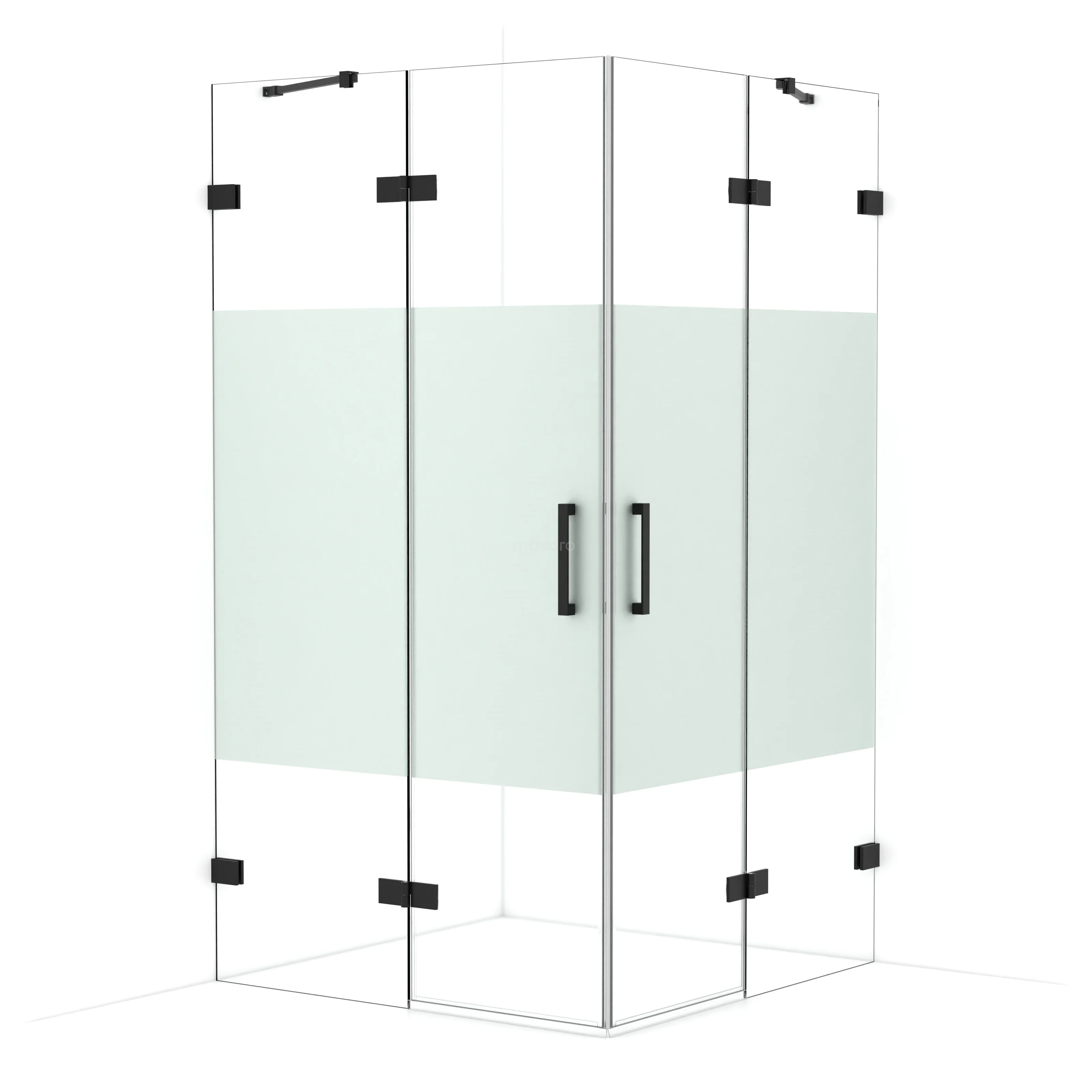 Diamond Shower cabin | 110x110 cm Matte black Clear with matt strip Pivot door Square