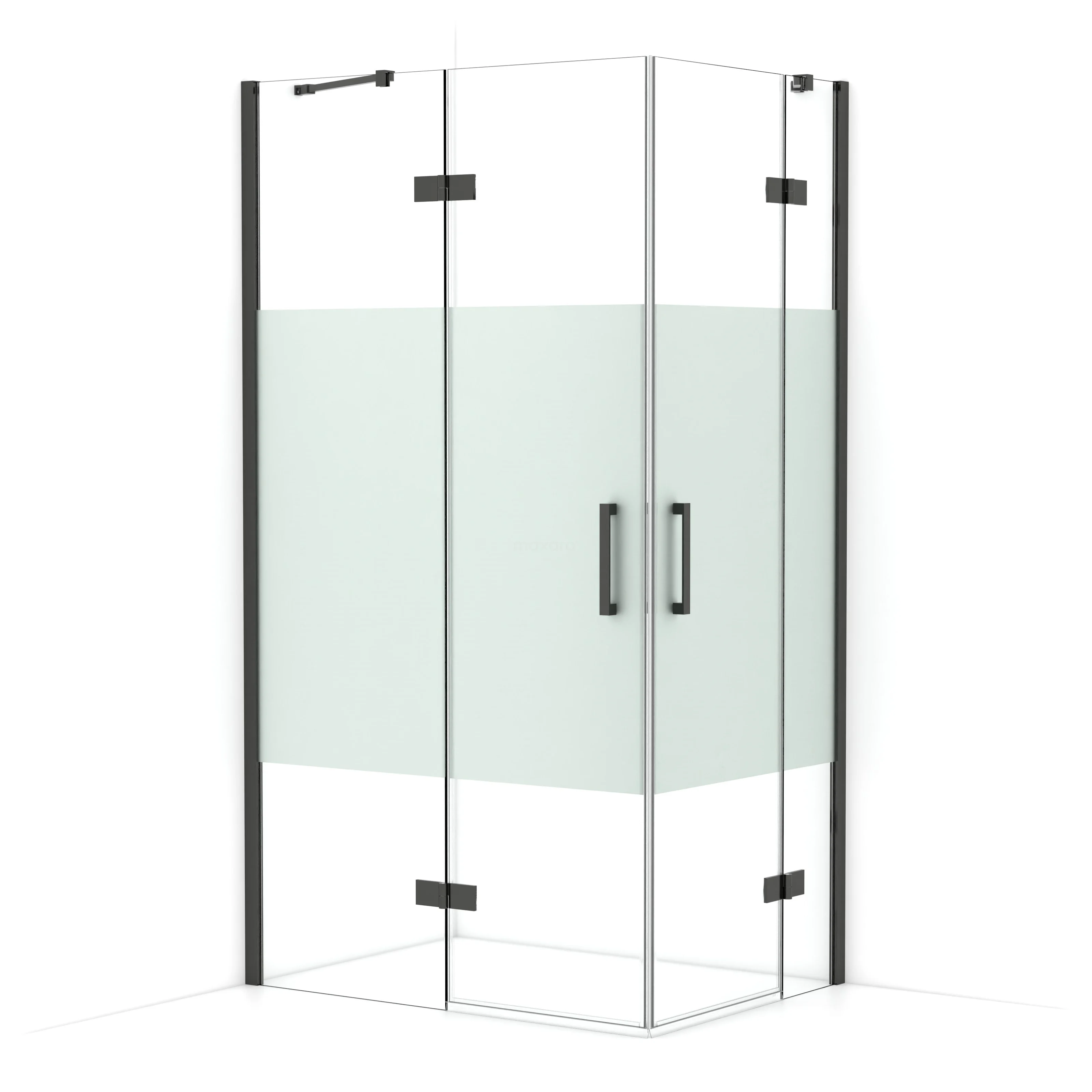 Diamond Shower cabin | 110x80 cm Black chrome Clear with matt strip Pivot door Rectangle
