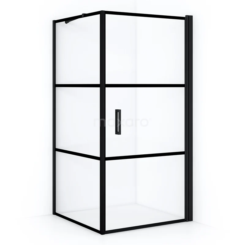Diamond Shower cabin | 90x90 cm Matte black Clear with 4 black stripes Pivot door Square