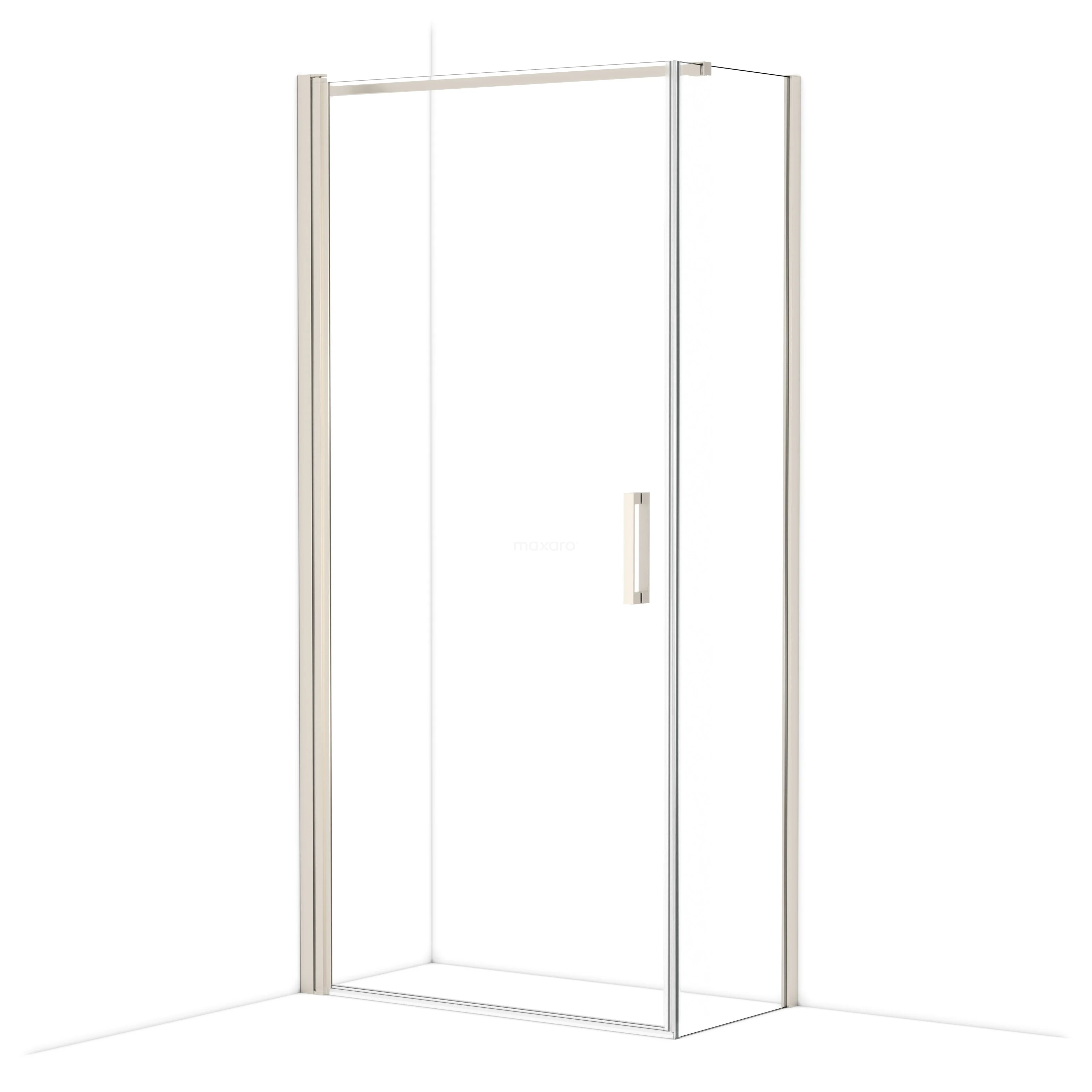 De douchecabine is uitgerust met een draaideur, waardoor u de volledige instapruimte ter beschikking heeft.