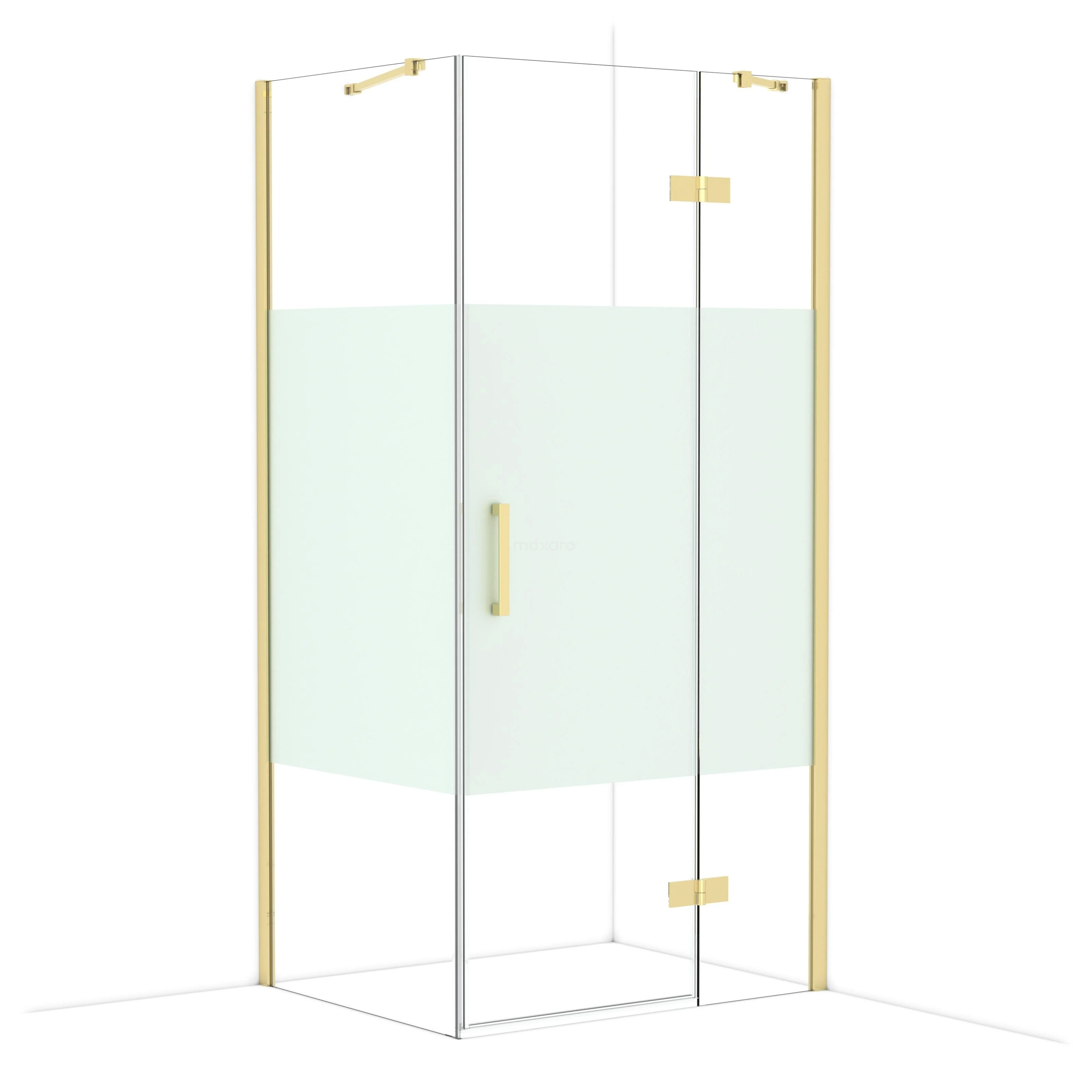 In de stijlvolle Diamond-douchecabine met een afmeting van 100x80 cm geniet je dagelijks van heerlijke douchesessies. Deze rechthoekige cabine kenmerkt zich door een muurprofiel en het verticale handvat. Dit exemplaar heeft een verfijnd en luxe design van glanzend lichtgoud en is voorzien van helder glas met matte strook voor meer privacy. De douche is verstelbaar, waardoor je deze gemakkelijk passend maakt.