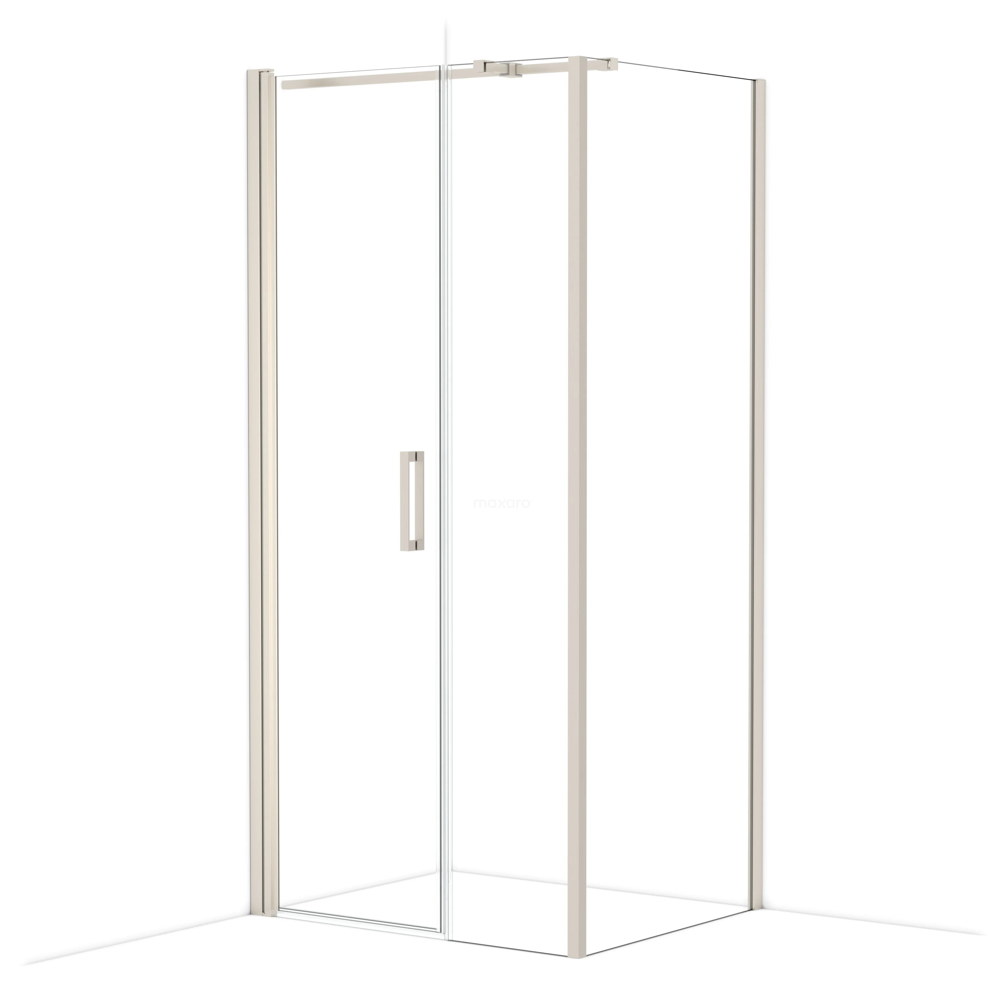 De douchecabine is uitgerust met een draaideur, waardoor u de volledige instapruimte ter beschikking heeft.