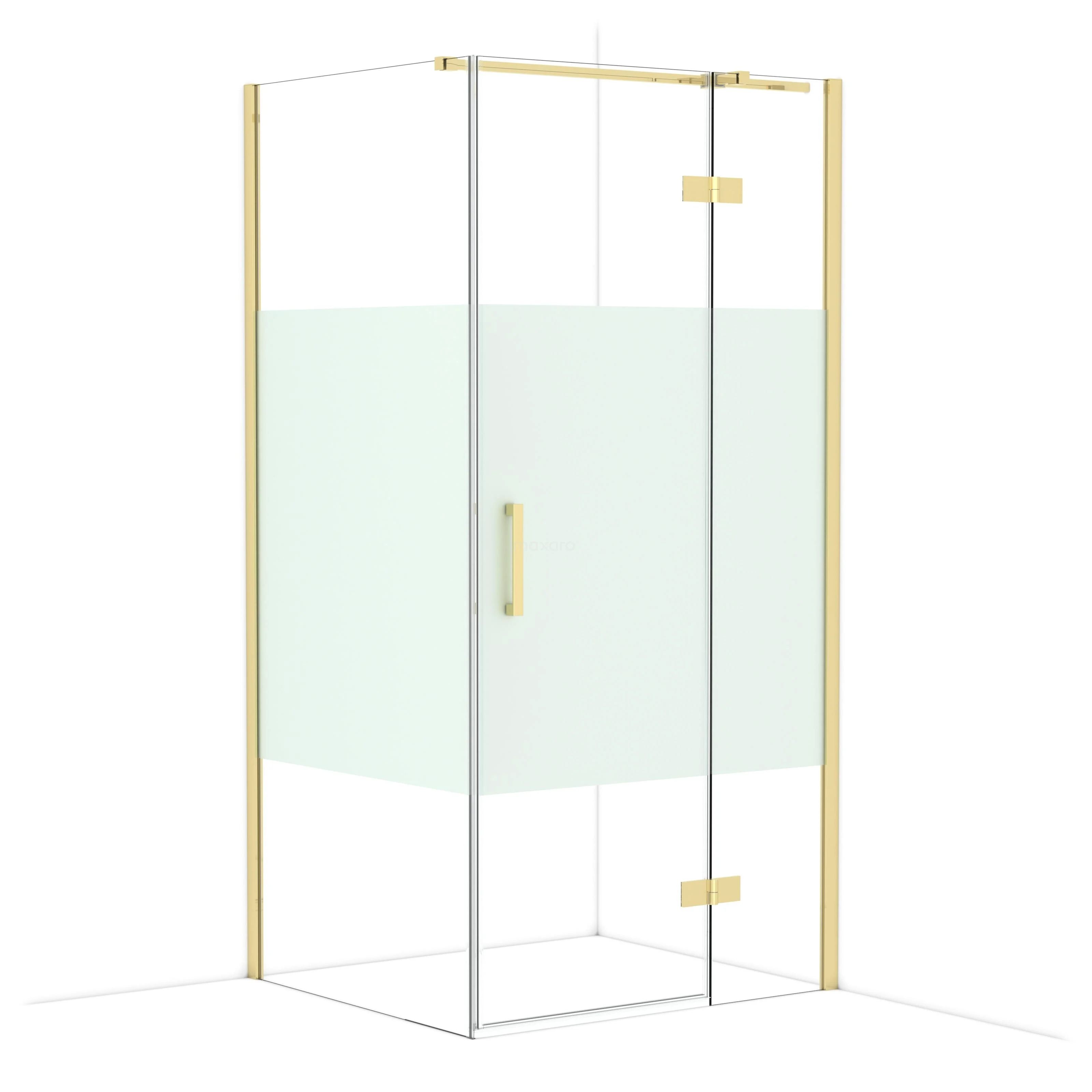 In de stijlvolle Diamond-douchecabine met een afmeting van 100x90 cm geniet je dagelijks van heerlijke douchesessies. Deze rechthoekige cabine kenmerkt zich door een muurprofiel en het verticale handvat. Dit exemplaar heeft een verfijnd en luxe design van glanzend lichtgoud en is voorzien van helder glas met matte strook voor meer privacy. De douche is verstelbaar, waardoor je deze gemakkelijk passend maakt.