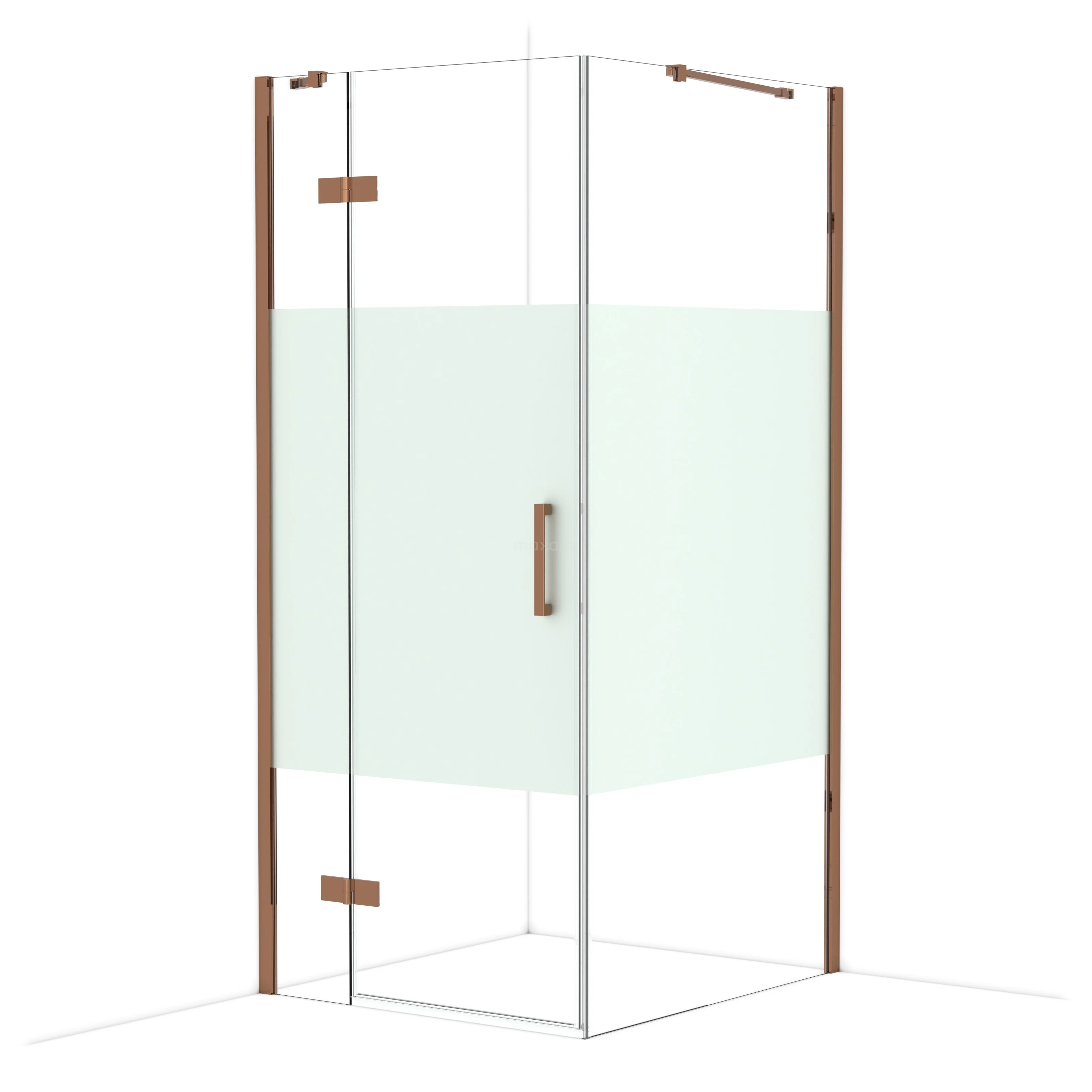 In de stijlvolle Diamond-douchecabine met een afmeting van 100x90 cm geniet je dagelijks van heerlijke douchesessies. Deze rechthoekige cabine kenmerkt zich door een muurprofiel en het verticale handvat. Dit exemplaar heeft een opvallend design van glanzend koper en is voorzien van helder glas met matte strook voor meer privacy. De douche is verstelbaar, waardoor je deze gemakkelijk passend maakt.