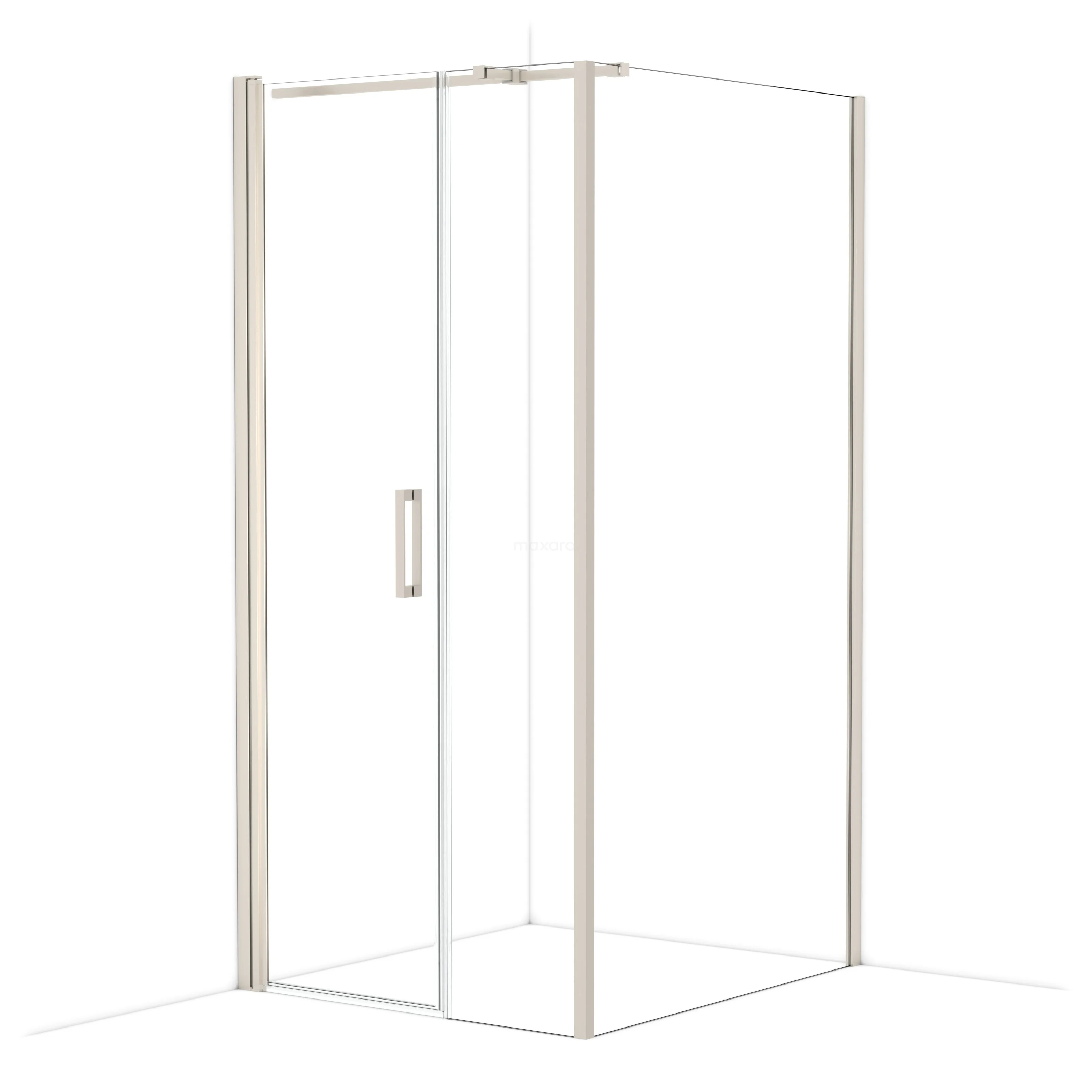 De douchecabine is uitgerust met een draaideur, waardoor u de volledige instapruimte ter beschikking heeft.