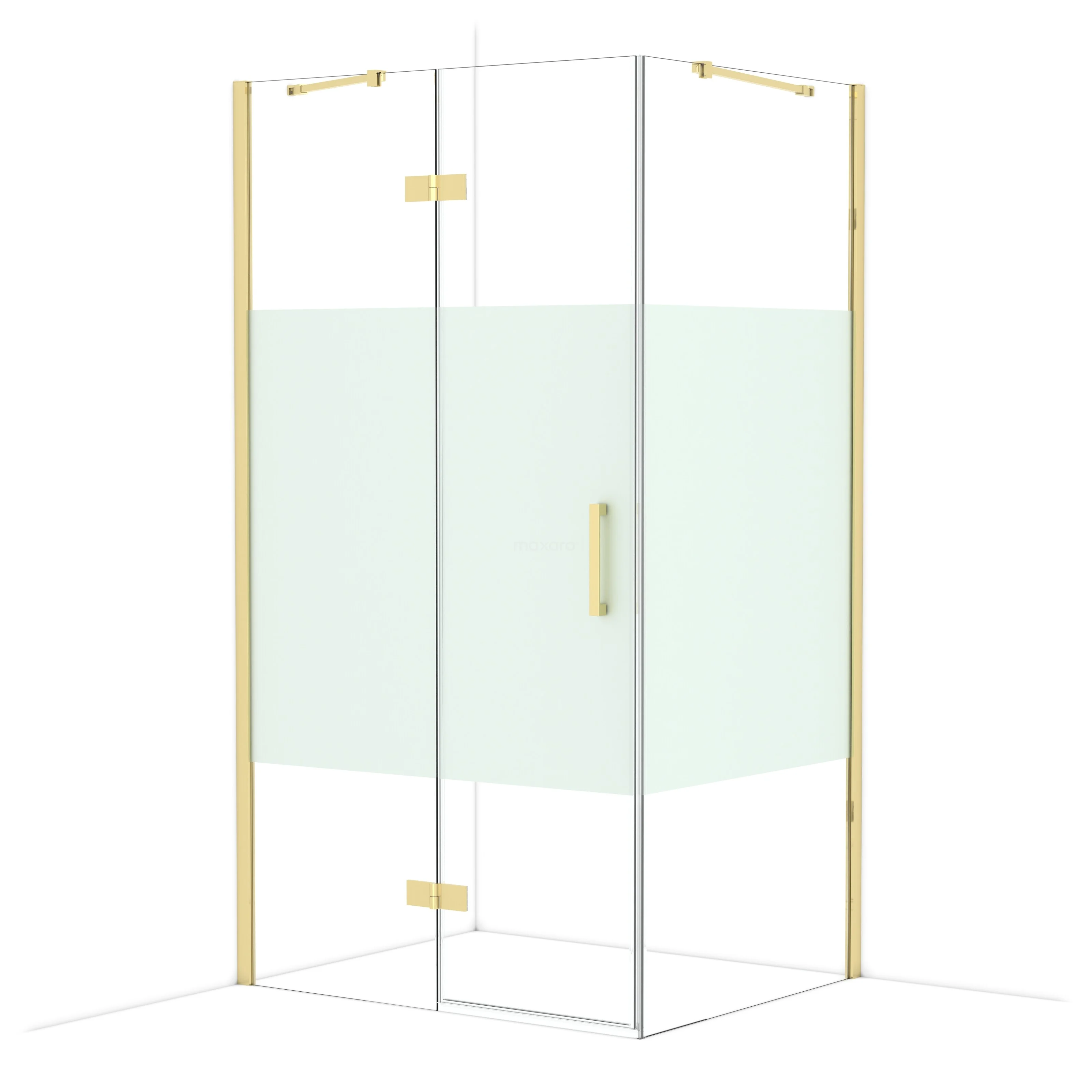 In de stijlvolle Diamond-douchecabine met een afmeting van 110x90 cm geniet je dagelijks van heerlijke douchesessies. Deze rechthoekige cabine kenmerkt zich door een muurprofiel en het verticale handvat. Dit exemplaar heeft een verfijnd en luxe design van glanzend lichtgoud en is voorzien van helder glas met matte strook voor meer privacy. De douche is verstelbaar, waardoor je deze gemakkelijk passend maakt.