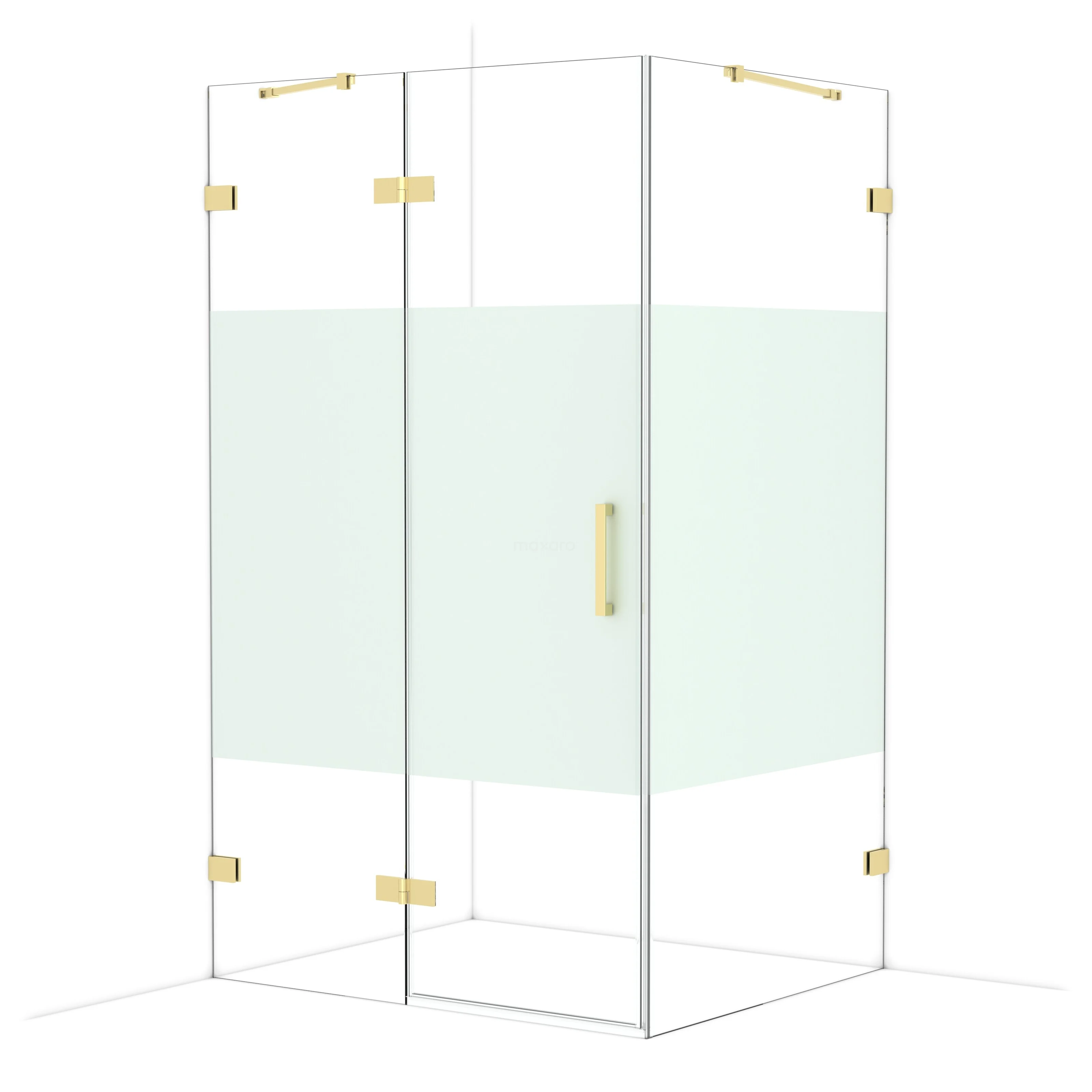 In de stijlvolle Diamond-douchecabine met een afmeting van 120x100 cm geniet je dagelijks van heerlijke douchesessies. Deze rechthoekige cabine kenmerkt zich door een tweepunstbevestiging en het verticale handvat. Dit exemplaar heeft een verfijnd en luxe design van glanzend lichtgoud en is voorzien van helder glas met matte strook voor meer privacy. De douche is verstelbaar, waardoor je deze gemakkelijk passend maakt.