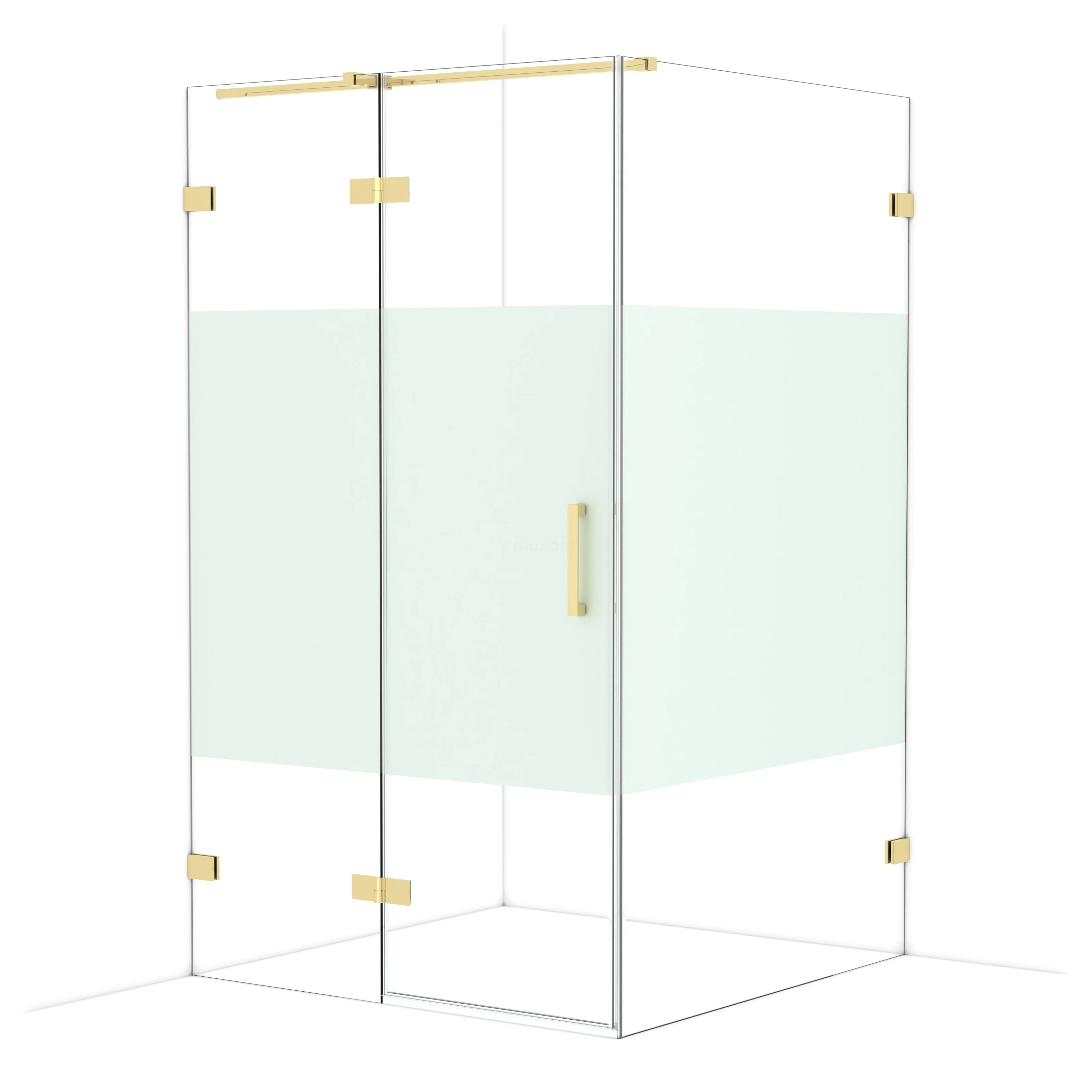 In de stijlvolle Diamond-douchecabine met een afmeting van 120x120 cm geniet je dagelijks van heerlijke douchesessies. Deze vierkante cabine kenmerkt zich door een tweepunstbevestiging en het verticale handvat. Dit exemplaar heeft een verfijnd en luxe design van glanzend lichtgoud en is voorzien van helder glas met matte strook voor meer privacy. De douche is verstelbaar, waardoor je deze gemakkelijk passend maakt.
