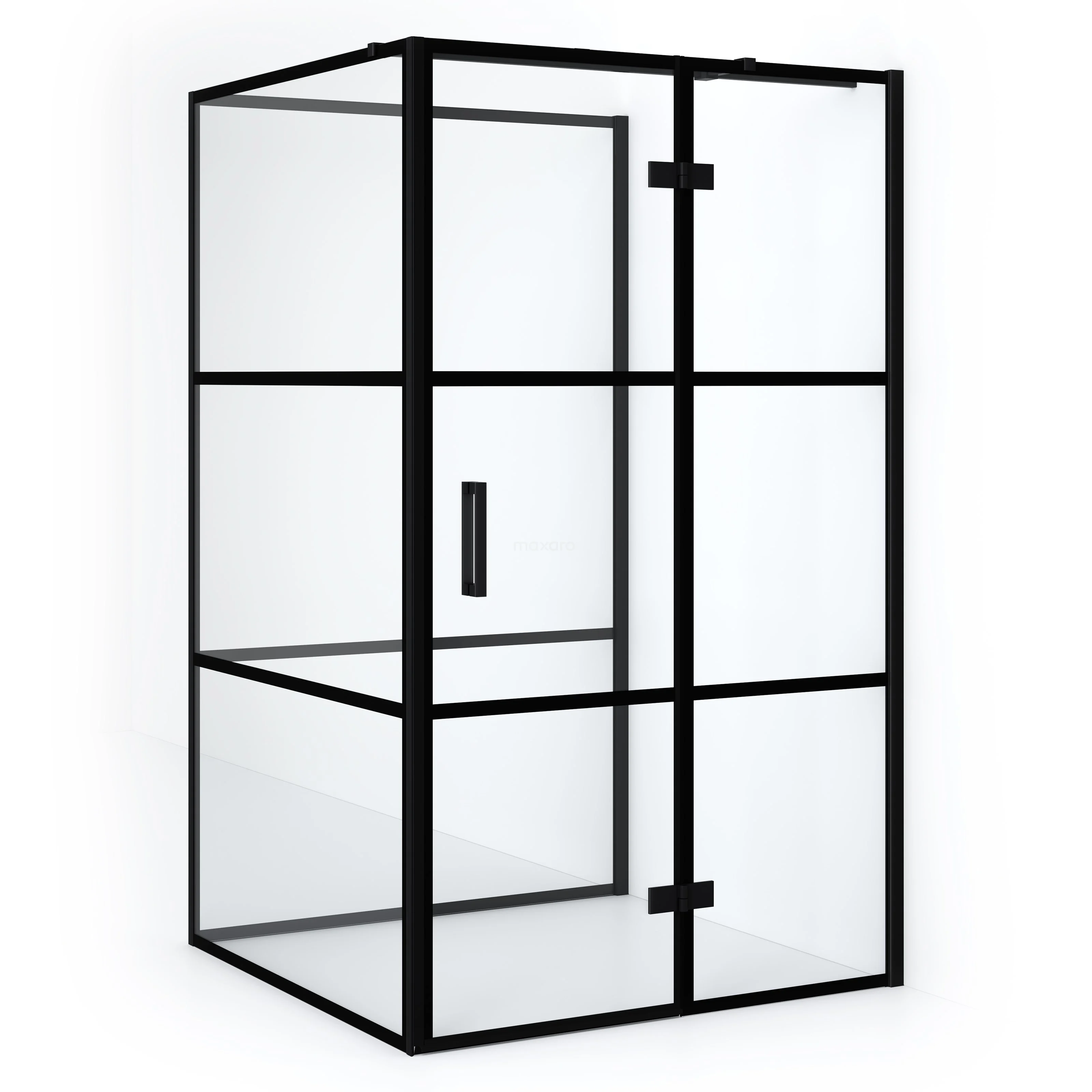 Diamond Shower enclosure | 120x120 cm Matte black Clear with 4 black stripes Pivot door Semi-detached square