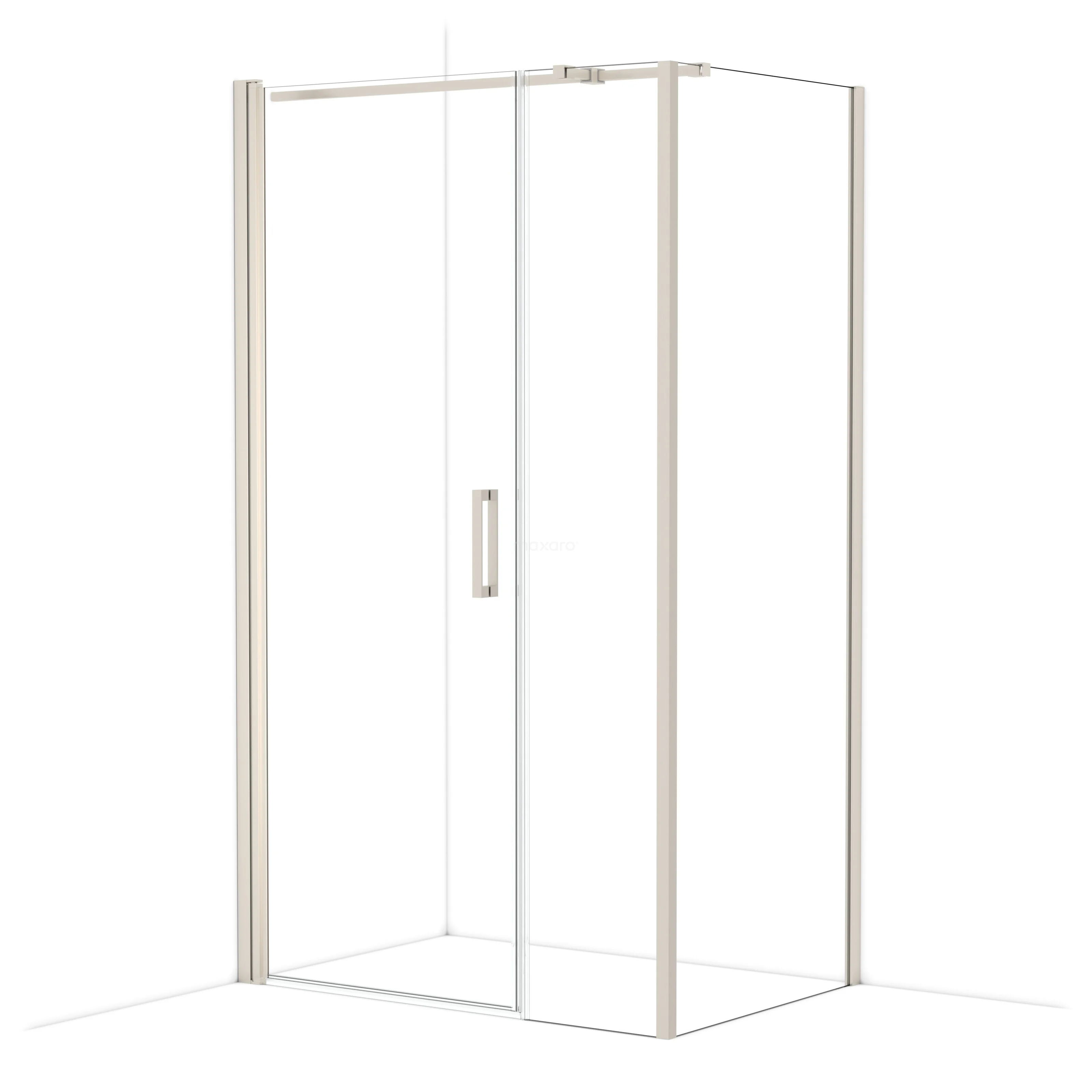 De douchecabine is uitgerust met een draaideur, waardoor u de volledige instapruimte ter beschikking heeft.