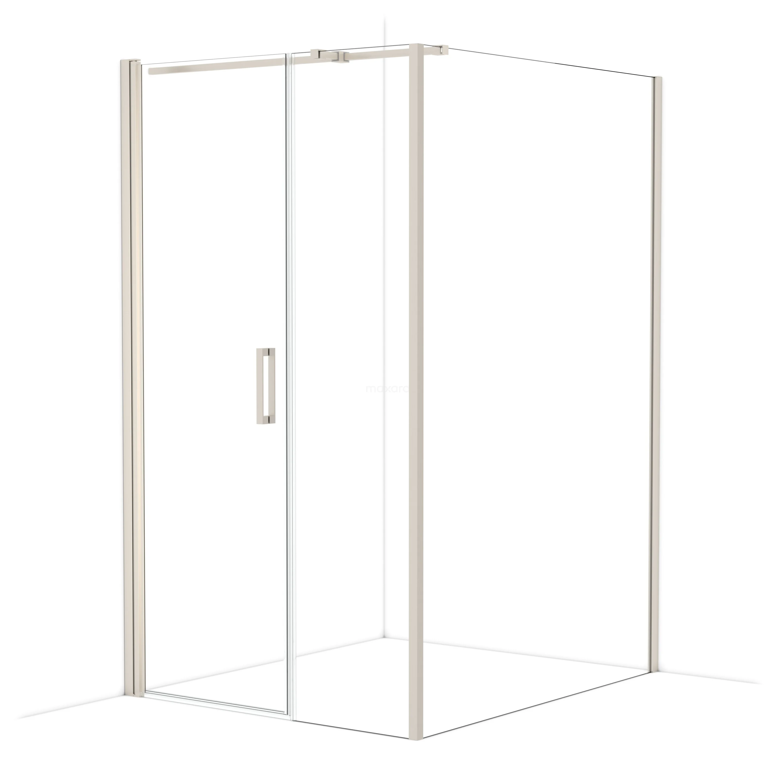 De douchecabine is uitgerust met een draaideur, waardoor u de volledige instapruimte ter beschikking heeft.