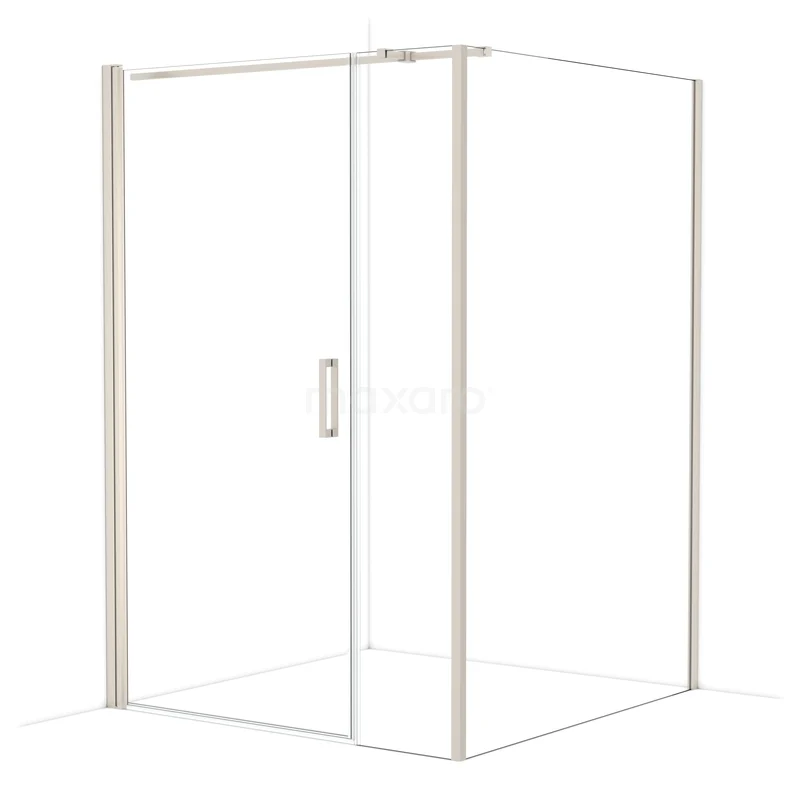 De douchecabine is uitgerust met een draaideur, waardoor u de volledige instapruimte ter beschikking heeft.