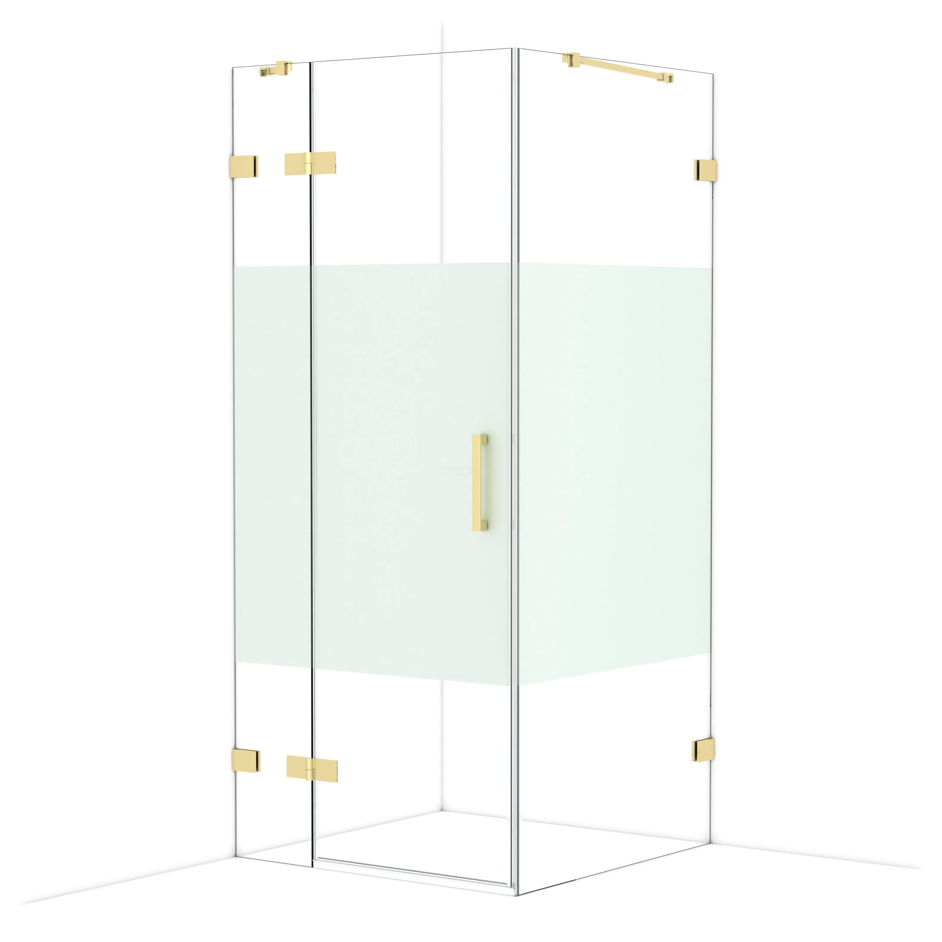 In de stijlvolle Diamond-douchecabine met een afmeting van 90x90 cm geniet je dagelijks van heerlijke douchesessies. Deze vierkante cabine kenmerkt zich door een tweepunstbevestiging en het verticale handvat. Dit exemplaar heeft een verfijnd en luxe design van glanzend lichtgoud en is voorzien van helder glas met matte strook voor meer privacy. De douche is verstelbaar, waardoor je deze gemakkelijk passend maakt.