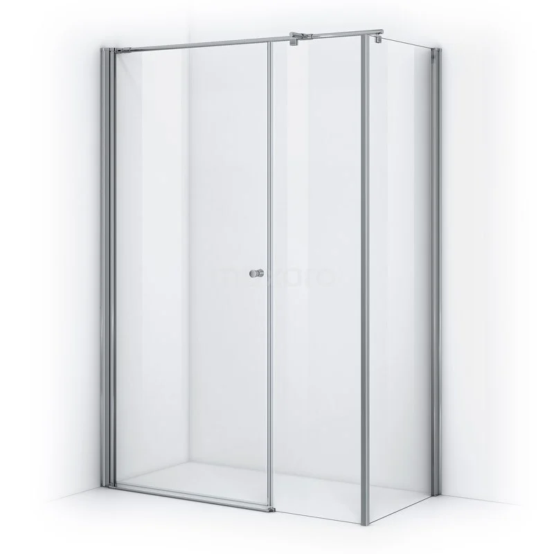 - Rectangular shower enclosure, fitted with 1 fixed wall + 1 side wall and 1 large sliding door