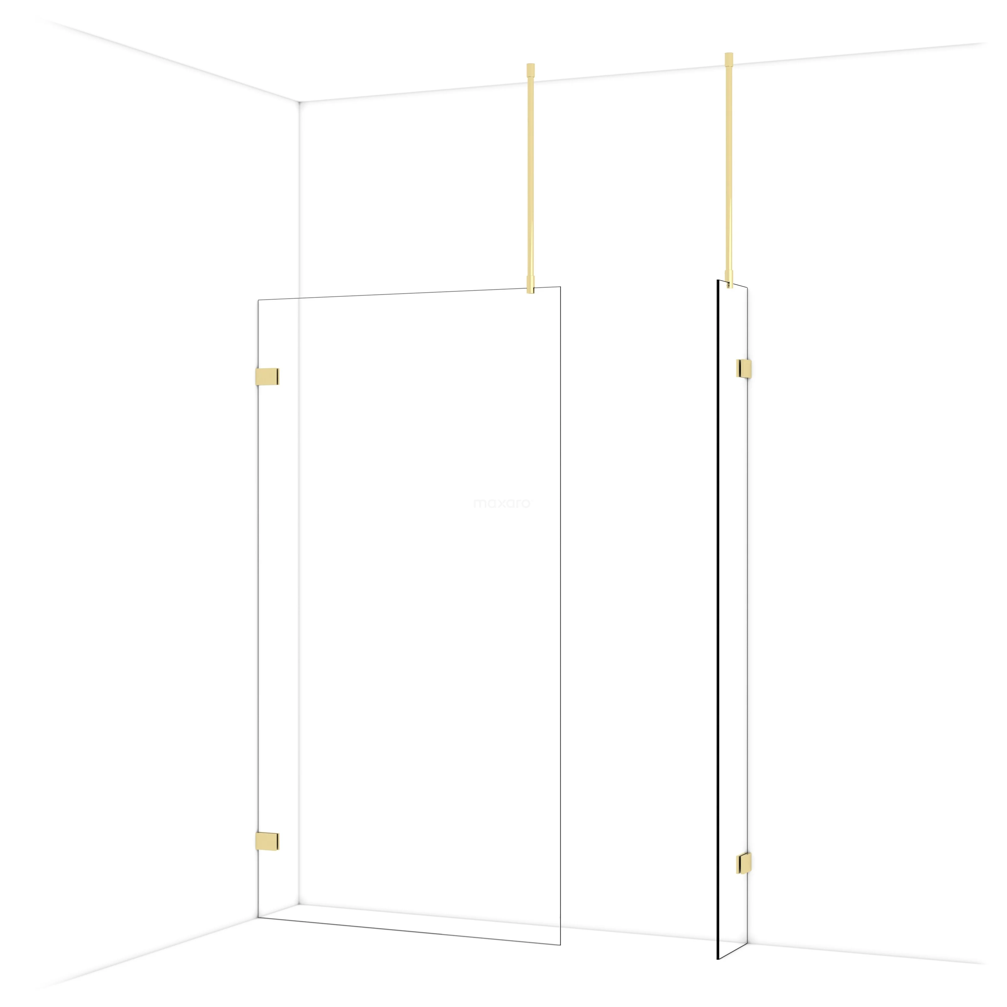 Diamond Walk-in shower | 110x30 cm Shiny light gold Clear glass 2 fixed walls
