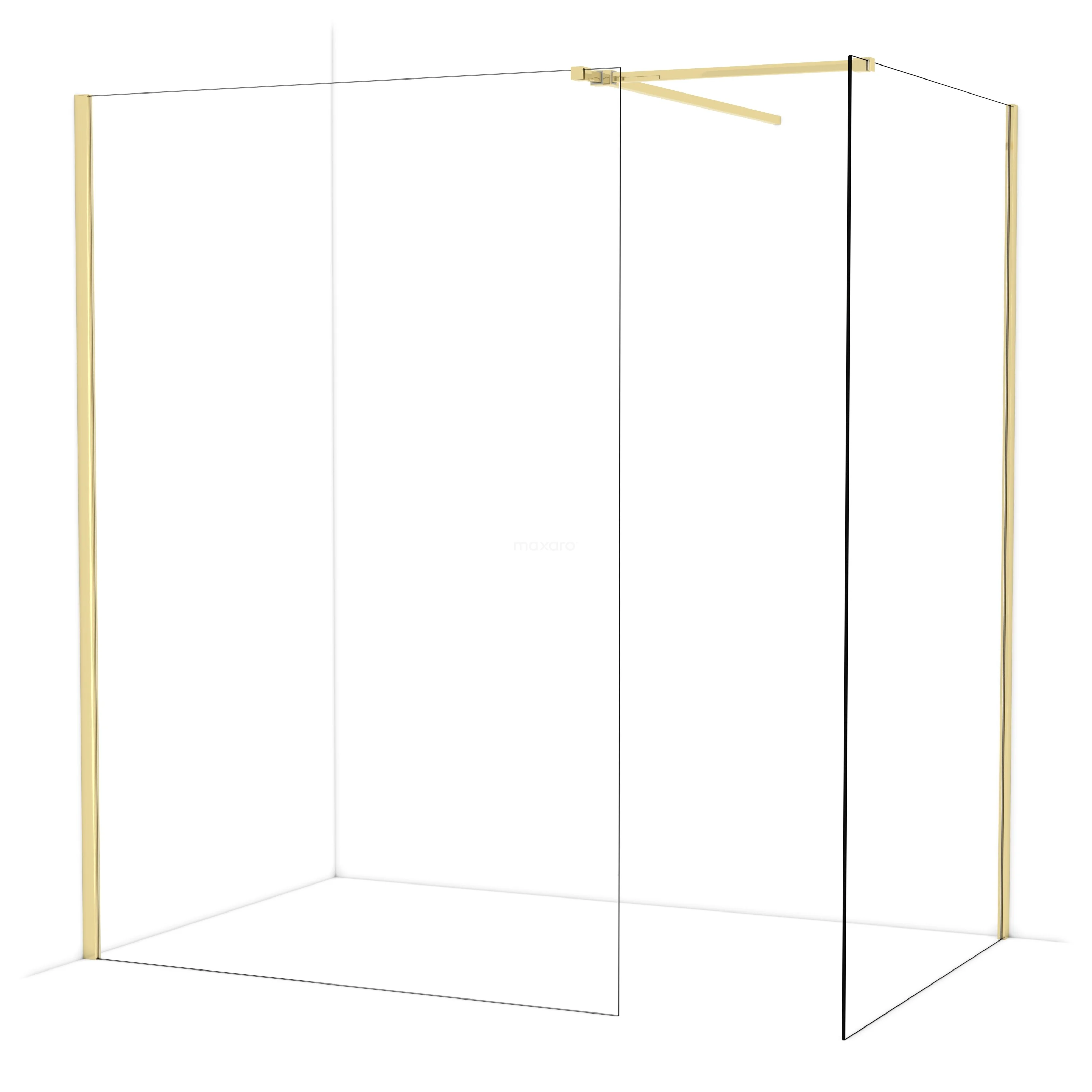 Diamond Walk-in shower | 140x120 cm Shiny light gold Clear glass 2 fixed walls