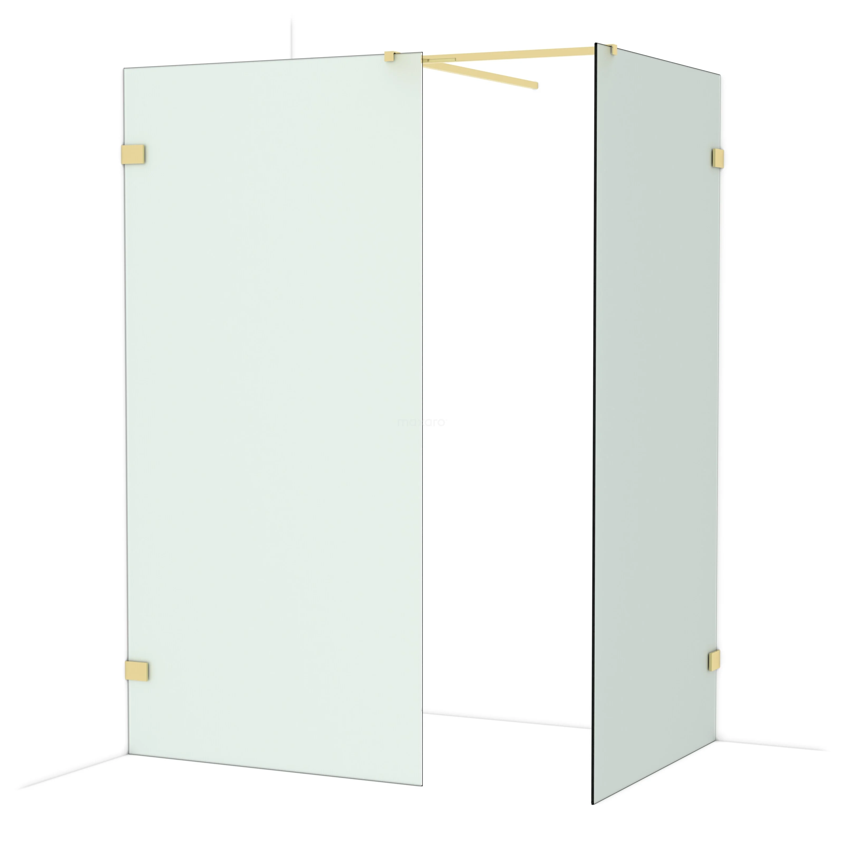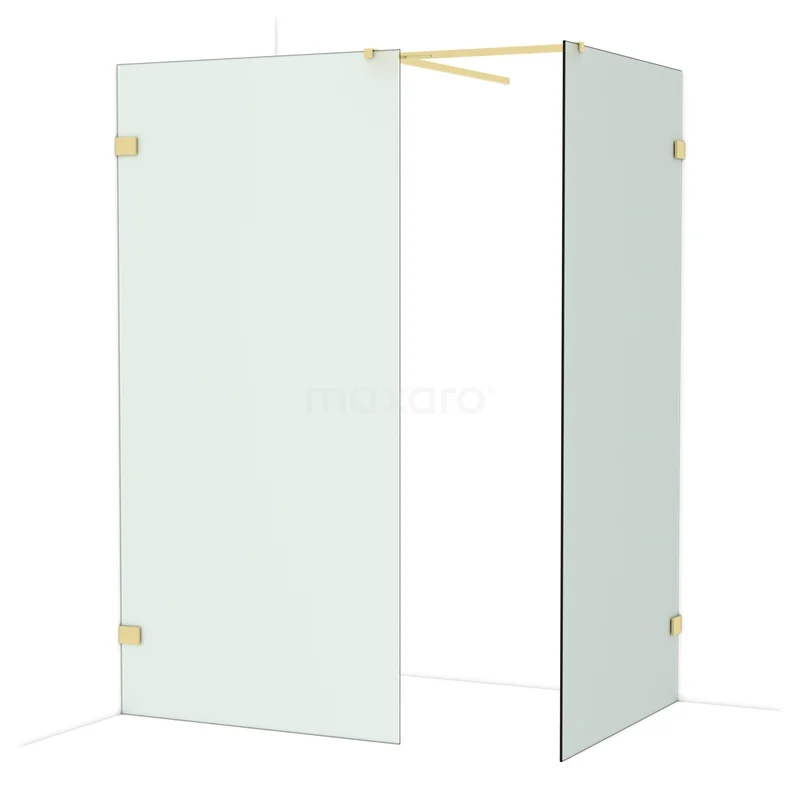 Diamond Walk-in shower | 100x100 cm Shiny light gold Frosted glass 2 fixed walls