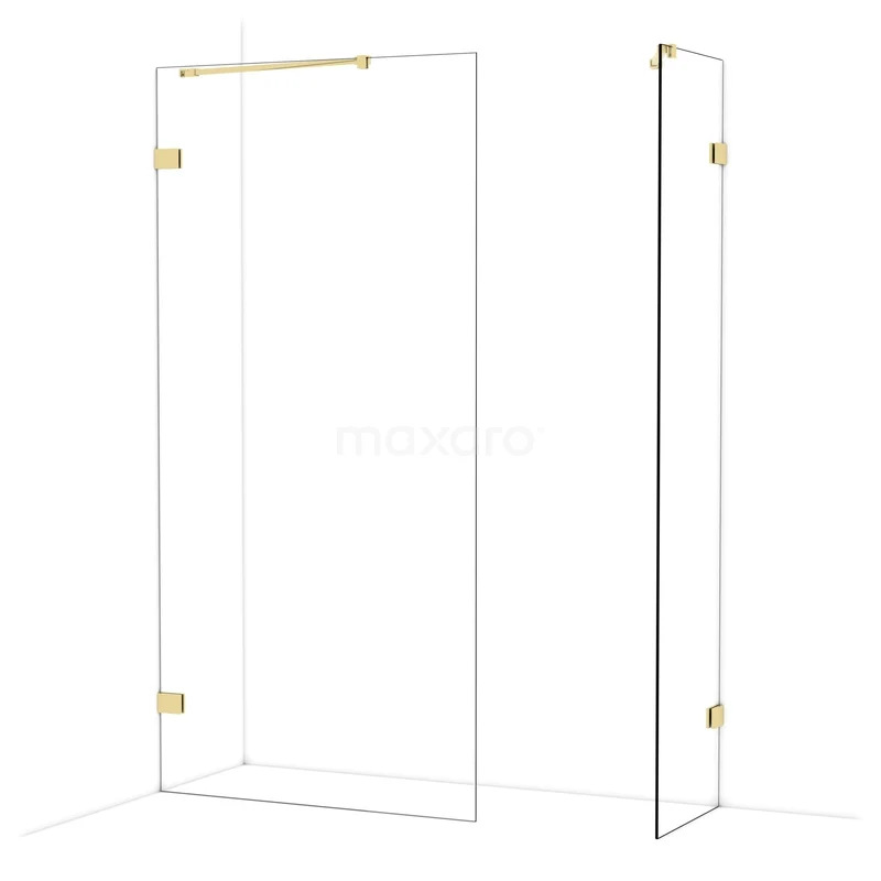 Diamond Walk-in shower | 100x50 cm Shiny light gold Clear glass 2 fixed walls