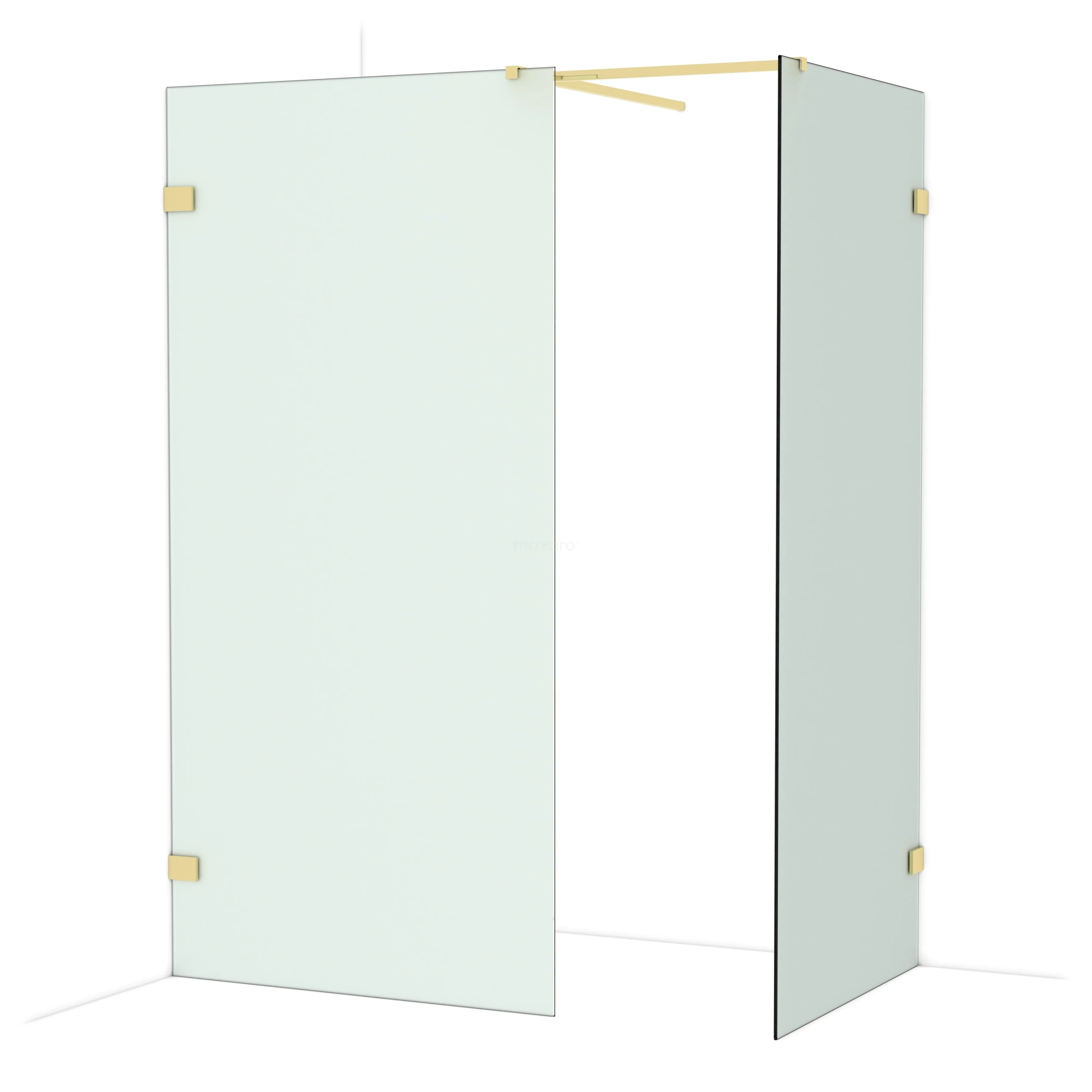 Diamond Walk-in shower | 100x90 cm Shiny light gold Frosted glass 2 fixed walls
