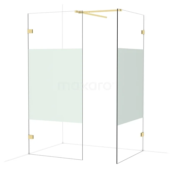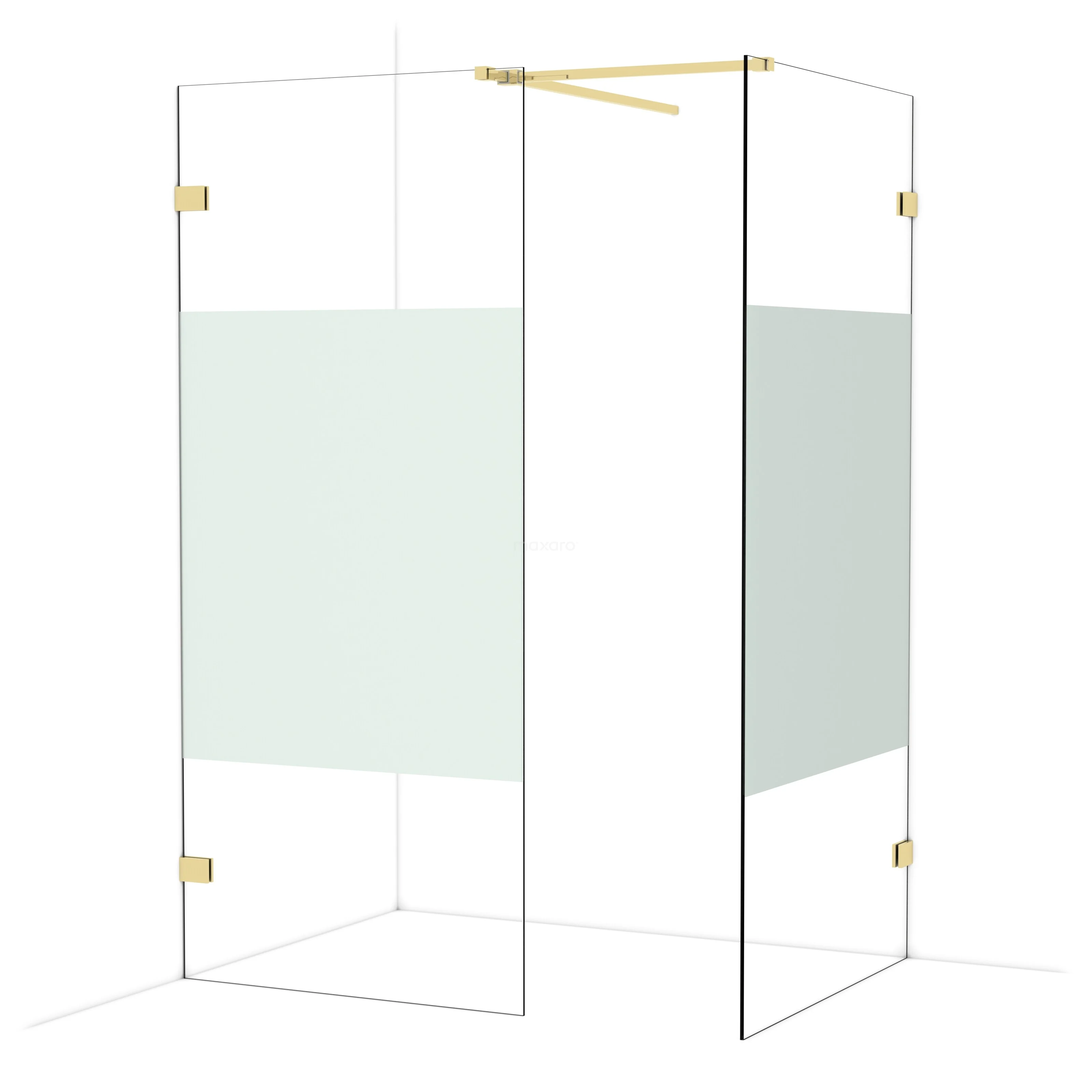 Diamond Walk-in shower | 100x90 cm Shiny light gold Clear with matt strip 2 fixed walls