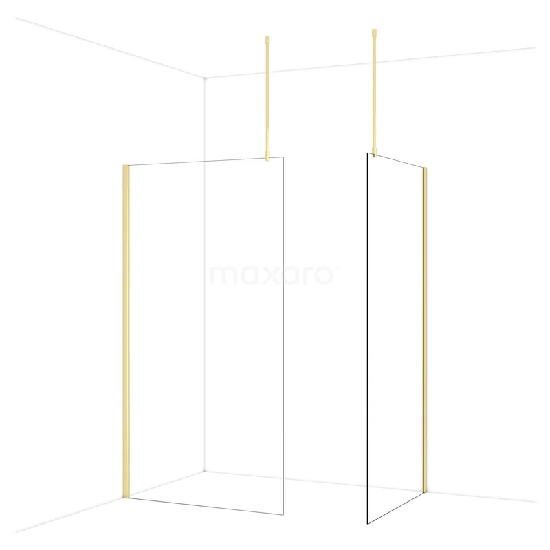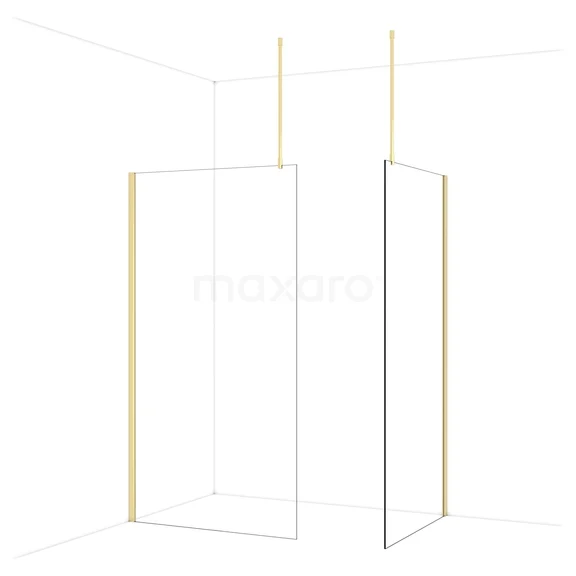 Diamond Walk-in shower | 110x100 cm Shiny light gold Clear glass 2 fixed walls