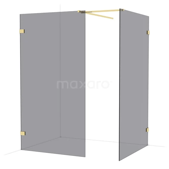 Diamond Walk-in shower | 120x110 cm Shiny light gold Smoke glass 2 fixed walls