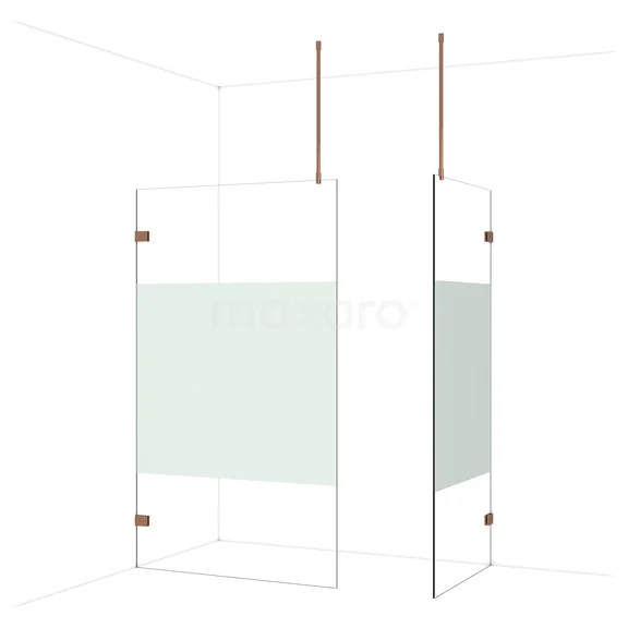 Diamond Walk-in shower | 120x90 cm Shiny copper Clear with matt strip 2 fixed walls
