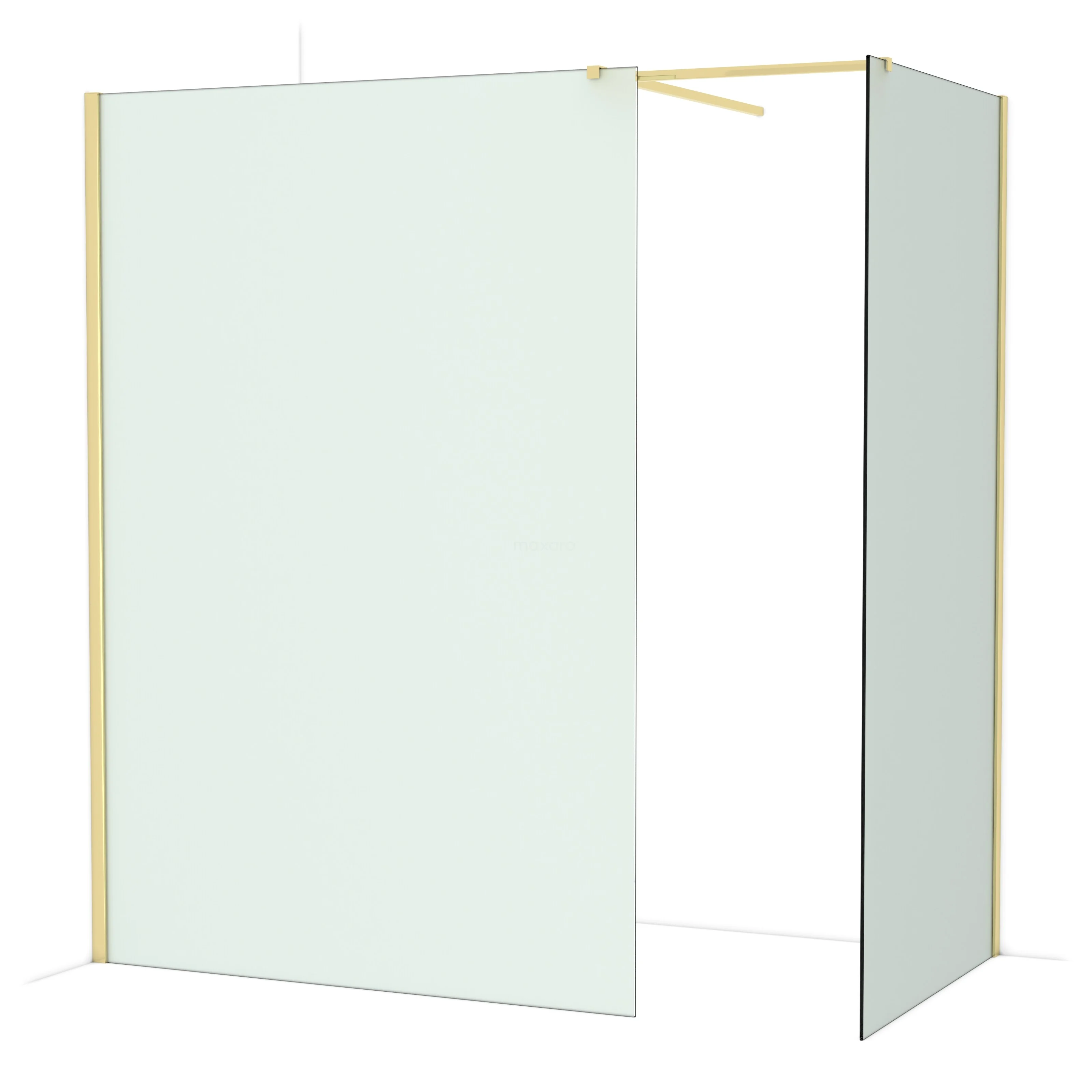Diamond Walk-in shower | 140x100 cm Shiny light gold Frosted glass 2 fixed walls
