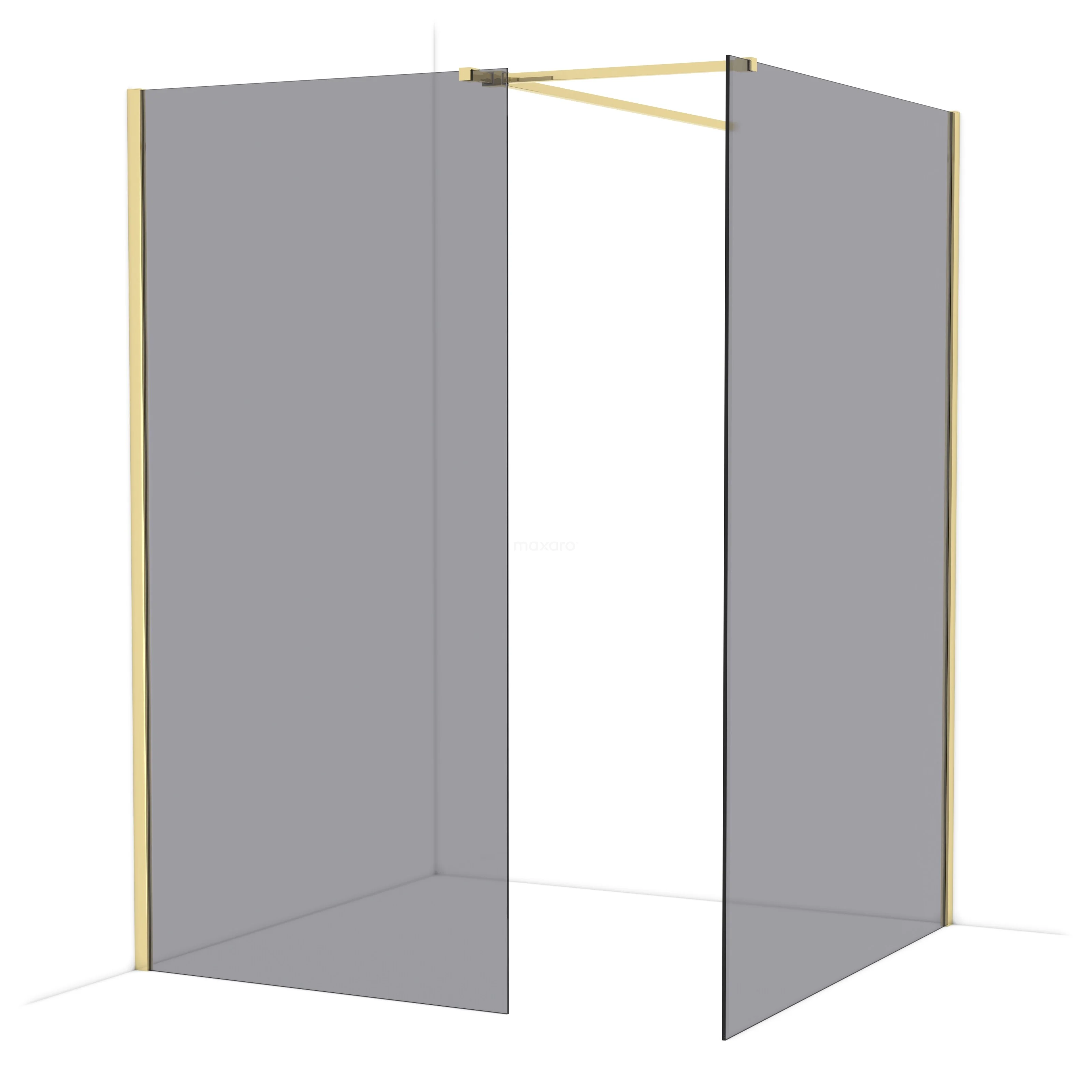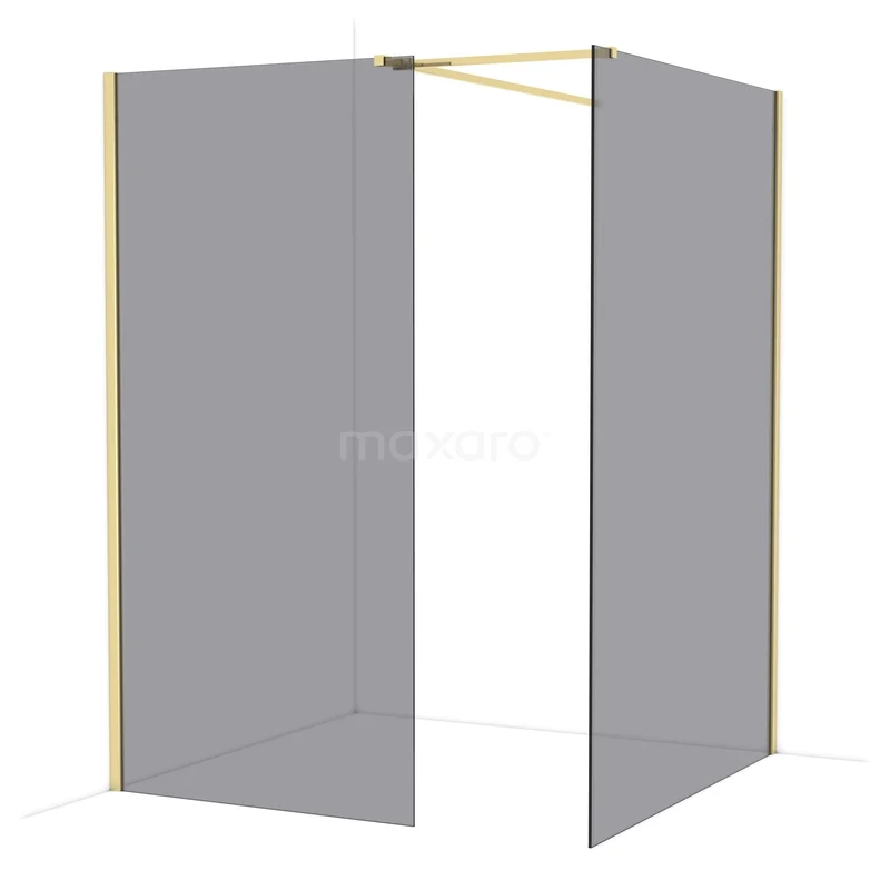 Diamond Walk-in shower | 140x100 cm Shiny light gold Smoke glass 2 fixed walls
