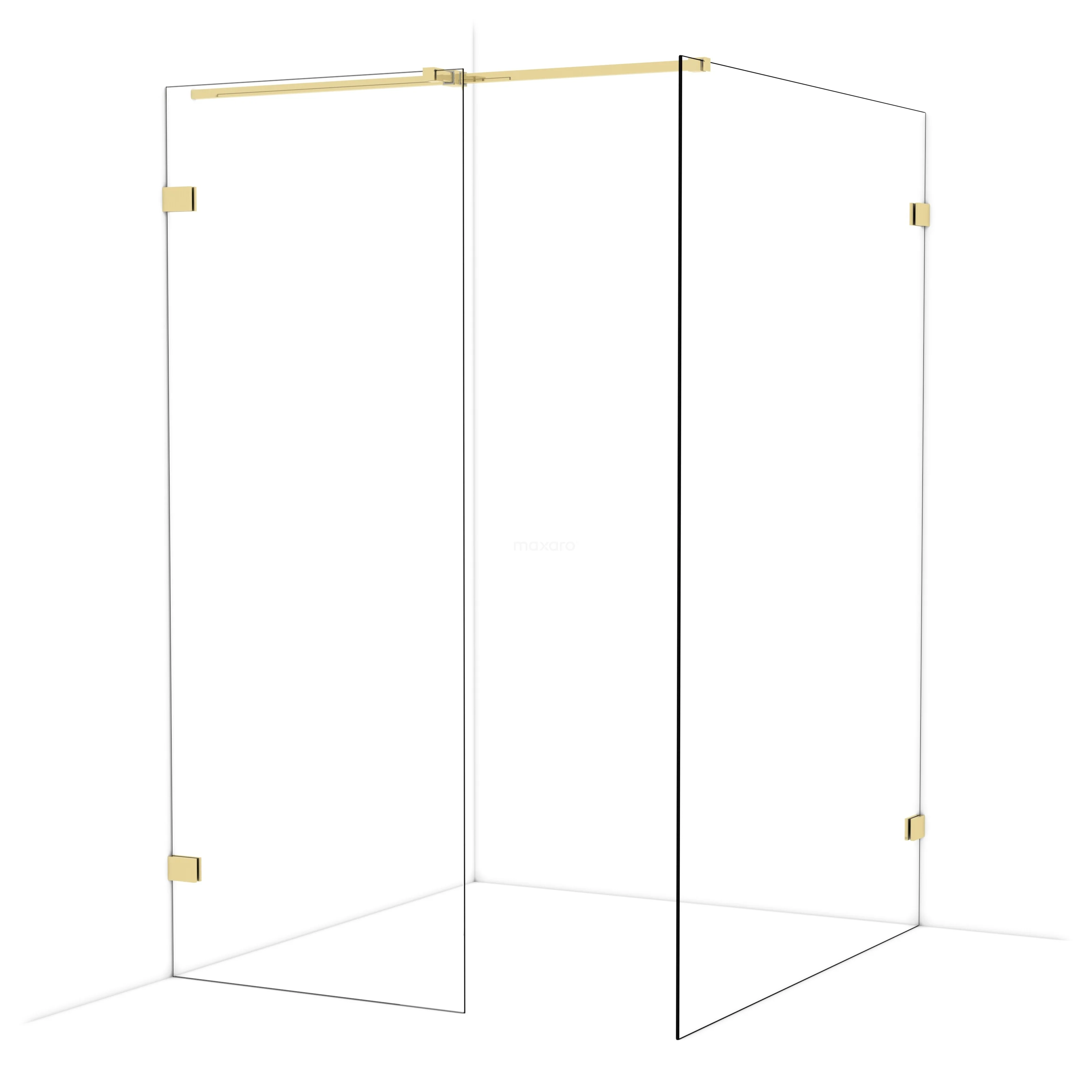 Diamond Walk-in shower | 140x80 cm Shiny light gold Clear glass 2 fixed walls